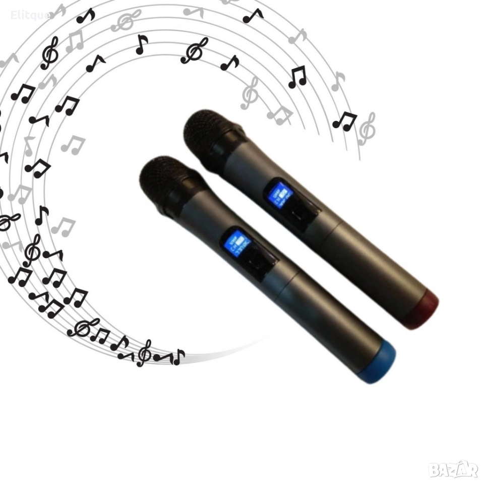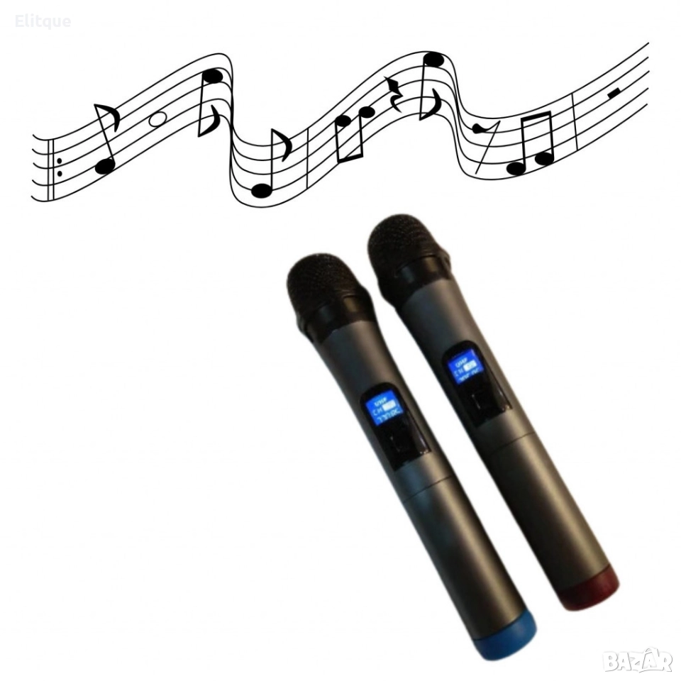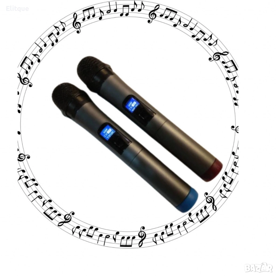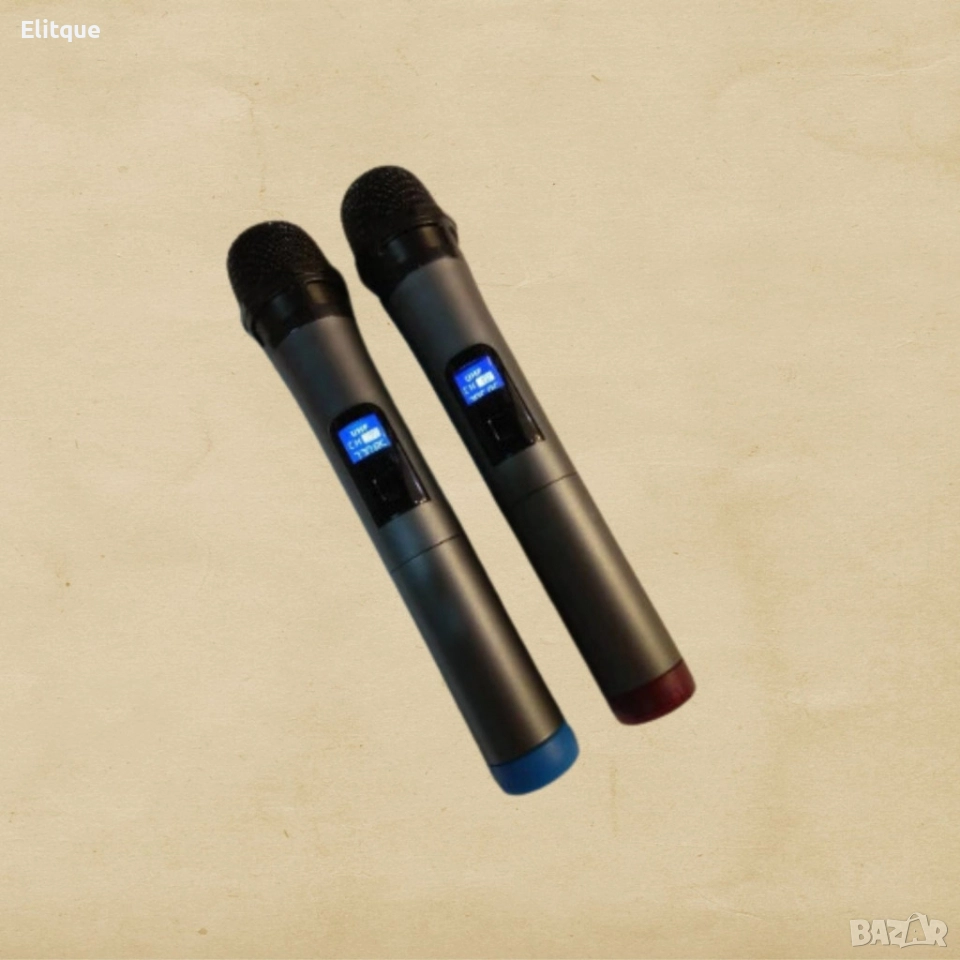 Безжичен микрофон; Тип: Вокален; Приемник: кабел жак моно 6.3 мм; Честота: 190MHz-950MHz; Чувствителност: 80dB; Стабилност: 15 ppm; Консумация на ток: 200mA; Обхват на микрофоните: до 100м; Микрофон: Батерии 2x9V (6F22); Захранване приемник: 220VAC; Размери: 200х154х130 мм; Марка/модел: WVNCR/SM-58-II; Адаптер захранващ 220VAC; Кабел жак мъжки 6.3мм за свързване на микрофони към уредба/караоке колона; Външна антена на предавателя; 12 месеца гаранция.