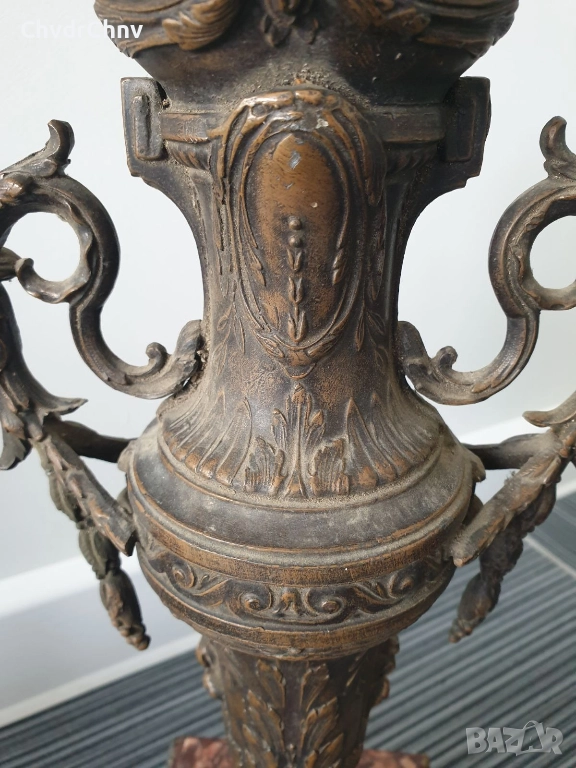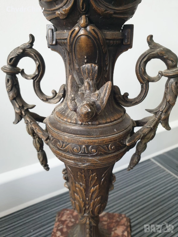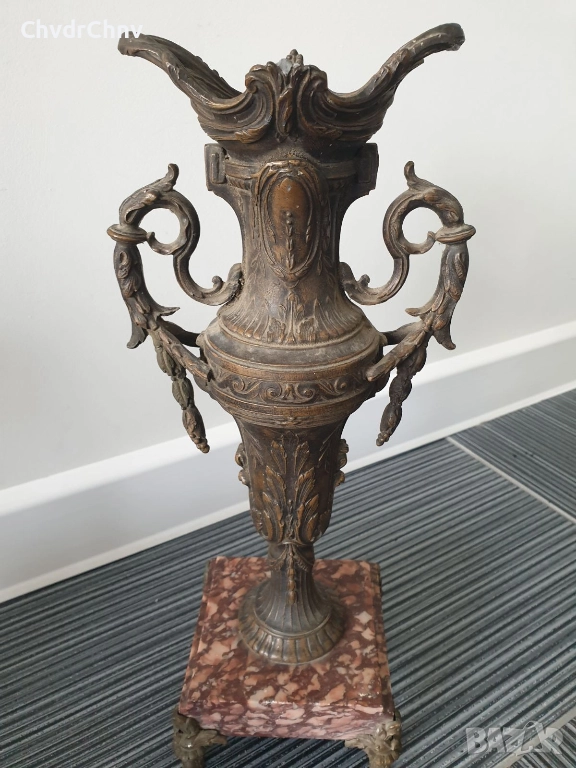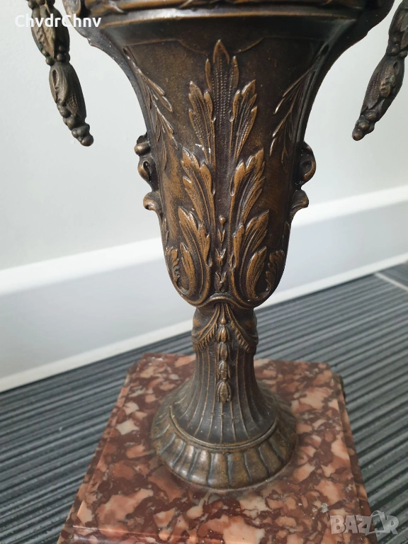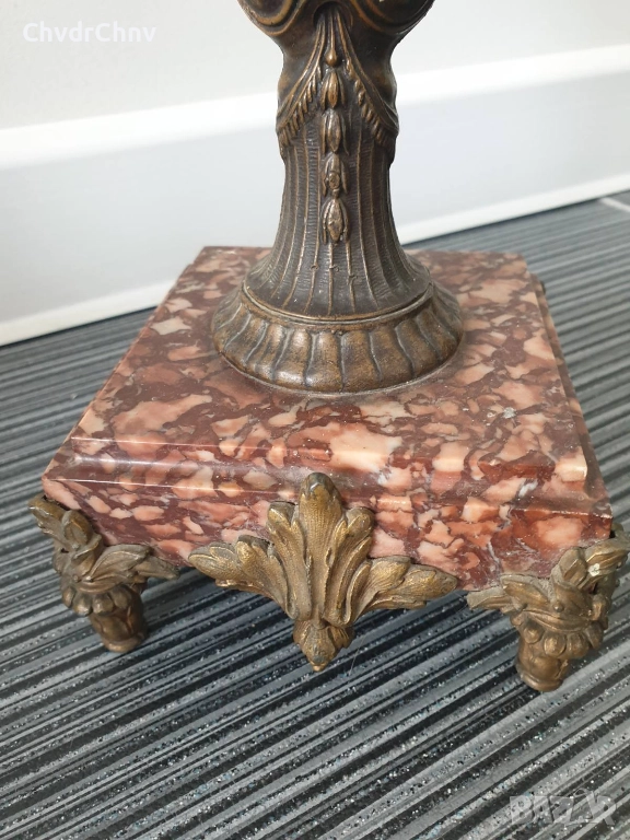 Франция 1800-те/37см-4кг/стара френска метална ваза ЦАМ-бронз-розов мрамор