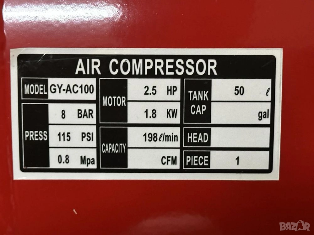 Компресор за въздух 100 л, 8 бара, професионален, гаранция 2 години