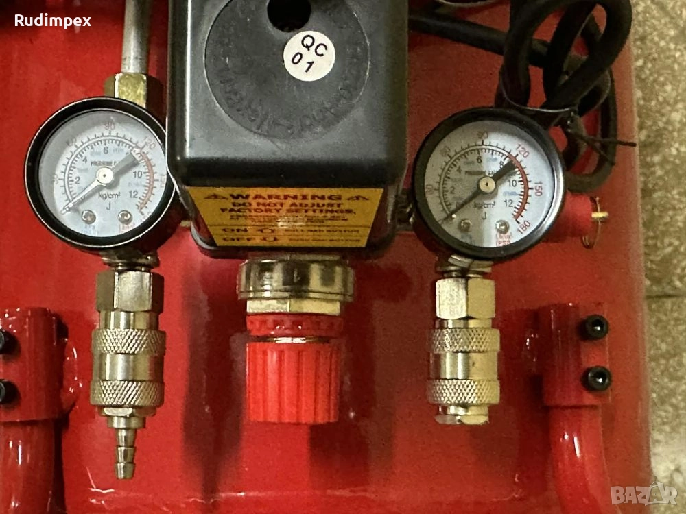 Компресор за въздух с колела и удобна дръжка за лесно транспортиране. Създаден е да генерира въздух под налягане за инструменти работещи с такъв въздух. С два манометъра.