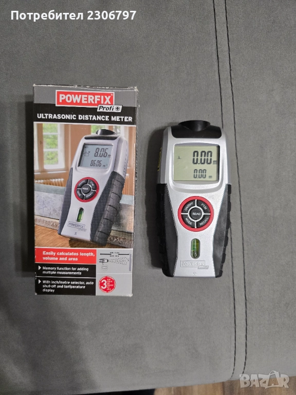 Ултразвуков далекомер Powerfix, снимка 1 - Други стоки за дома - 52840760 Ултразвуков далекомер Powerfix, снимка 2 - Други стоки за дома - 52840760 Ултразвуков далекомер Powerfix, снимка 3 - Други стоки за дома - 52840760 1/3