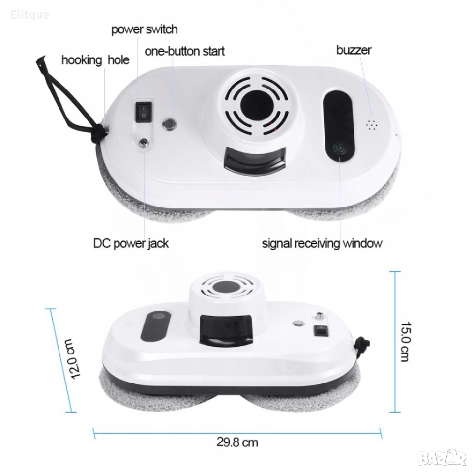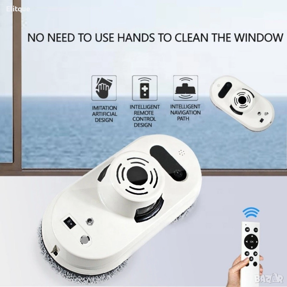 Робот за почистване на прозорци с дистанционно управление/ Материал: ABS пластмаса; Обхват на мощност: 100-240 V, 50-60 Hz; Консумация на енергия: 80 вата; Тип приемане: Вакуумна адсорбция; Скорост на почистване: 4,0 минути на квадратен метър; Функция: За сухо и мокро почистване; Режим на почистване: 3; Област на приложение: Стъкло, прозорец, външна стена, керамична плочка, вертикална маса; Разход: 75 W Дължина на кабела: 4 м;/ Размер на машината: 295 * 148 * 120 мм/Има защита от падане; с инфрачервено дистанционно, жироскоп за планиран път; След като стартирате уреда изчакайте 20 секунди, докато синята светлина престане да мига след това вече може да започнете работа с него. Това изчакване се дължина на факта, че робота си определя равнината.
