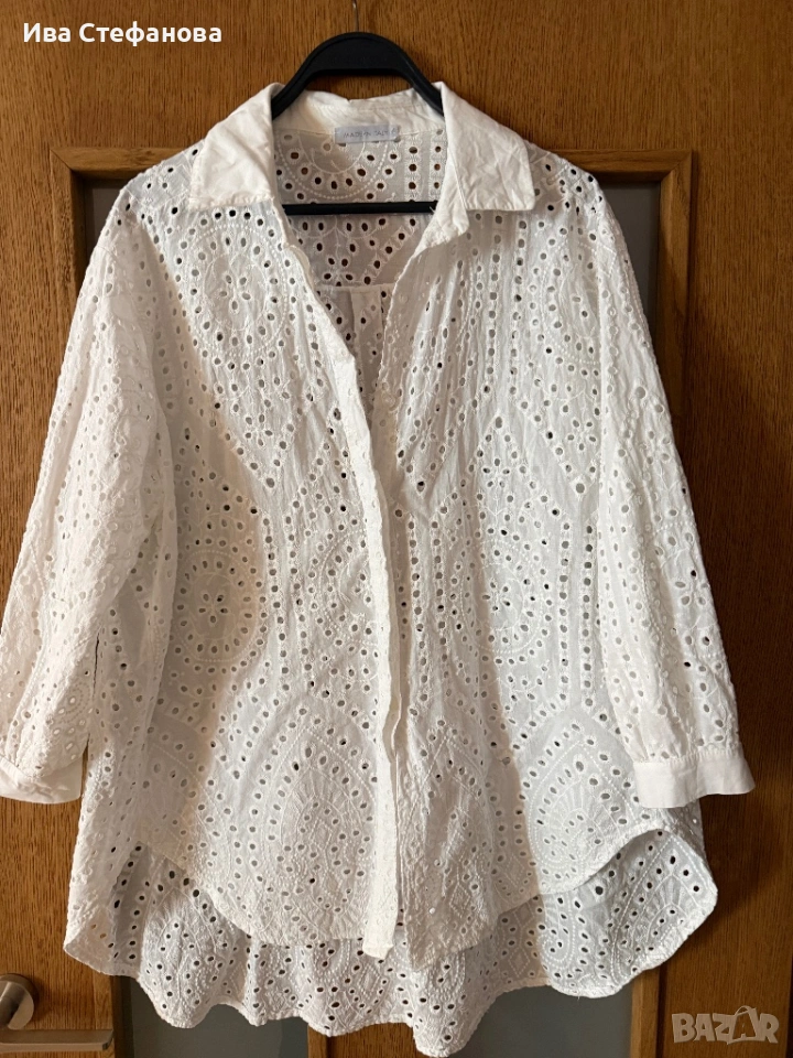 Нова универсален one size бяла елегантна риза 100 % памук памучна рязяна дантела Италия Italy → Обява 52841066