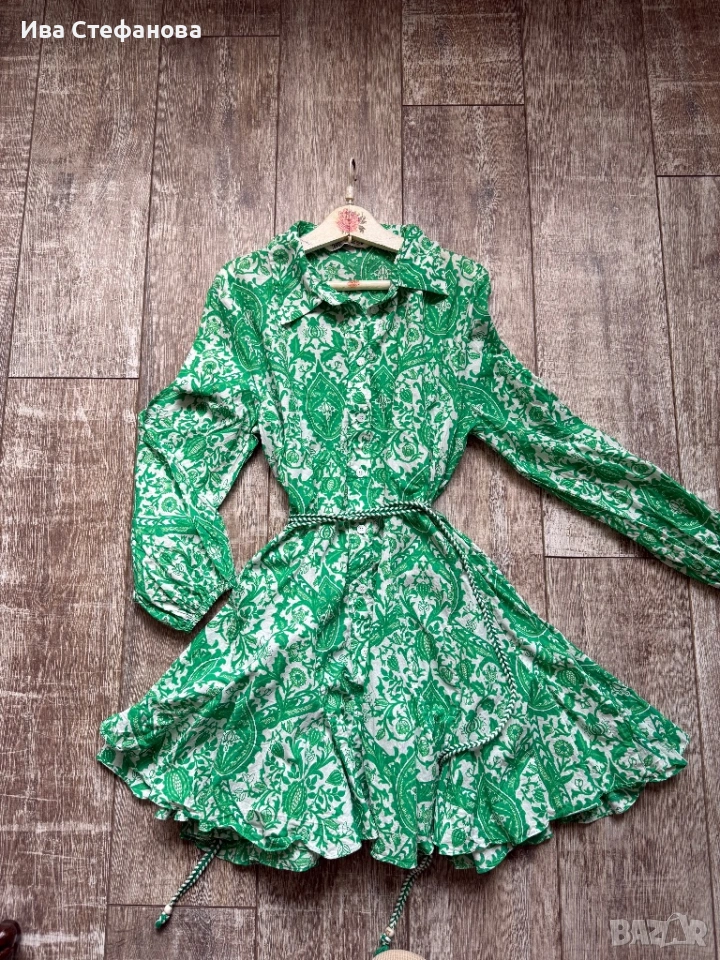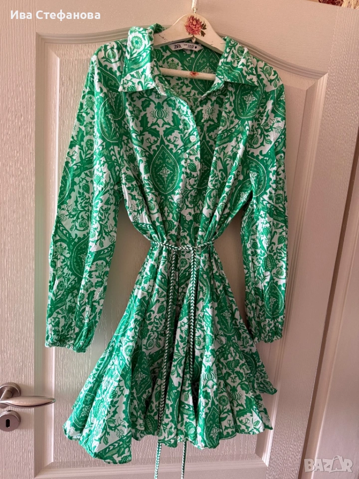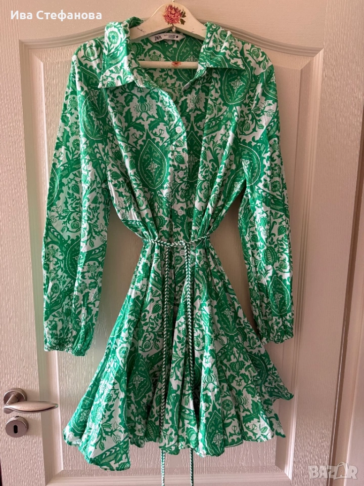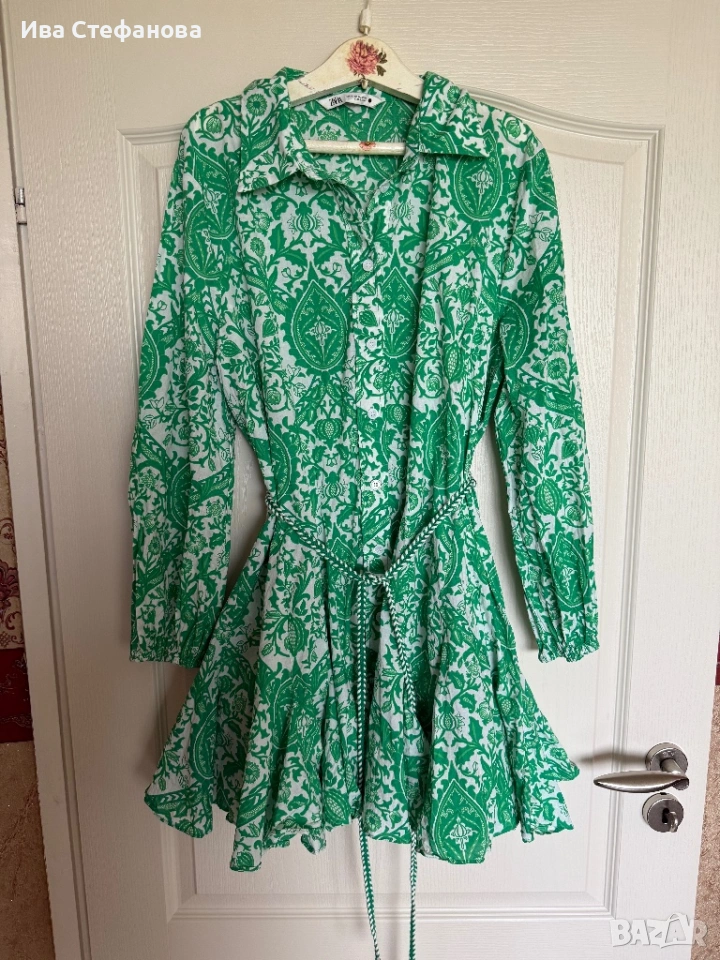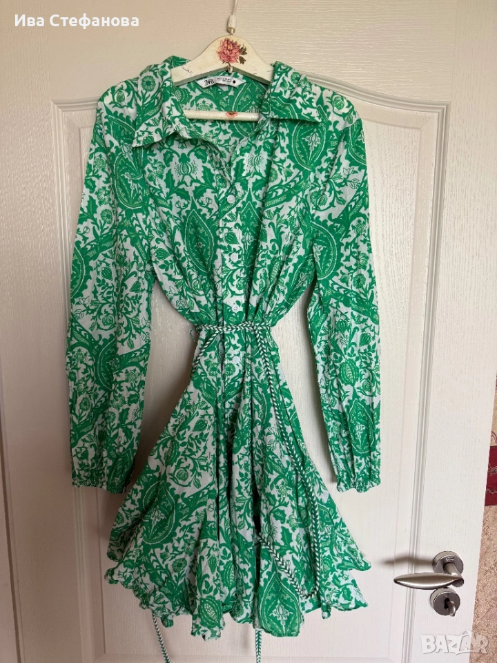Нова зелена ежедневна елегантна рокля zara Zara Зара 100 % памук памучна разкроена → Обява 52841097