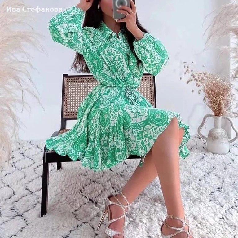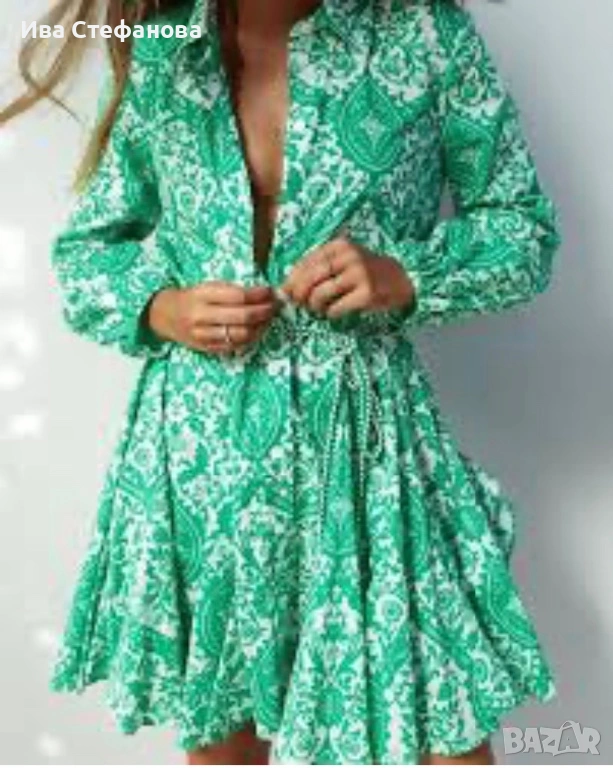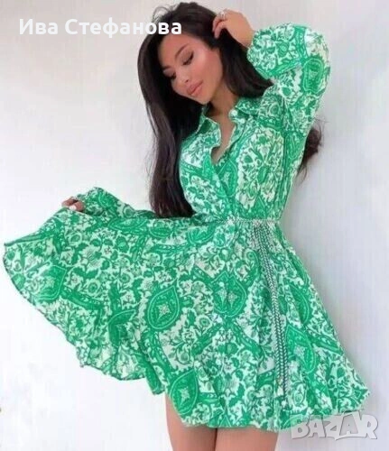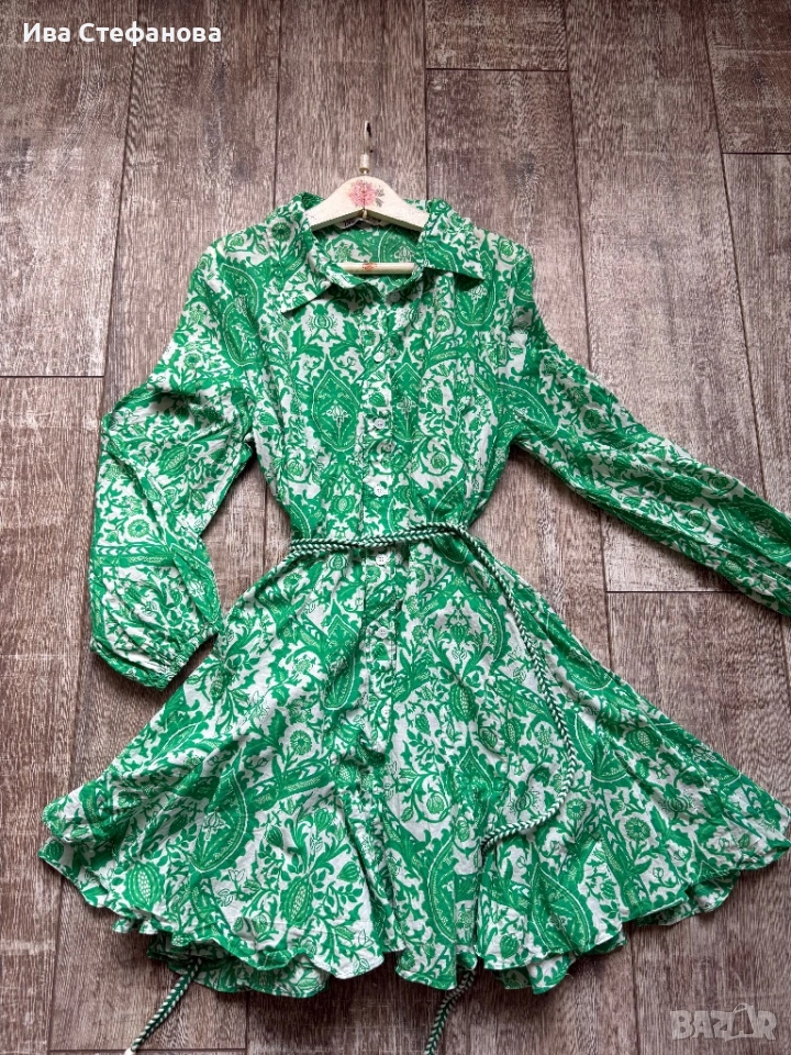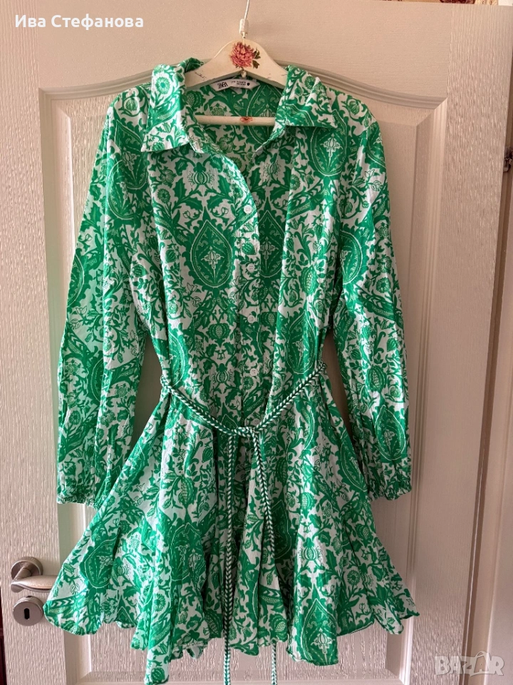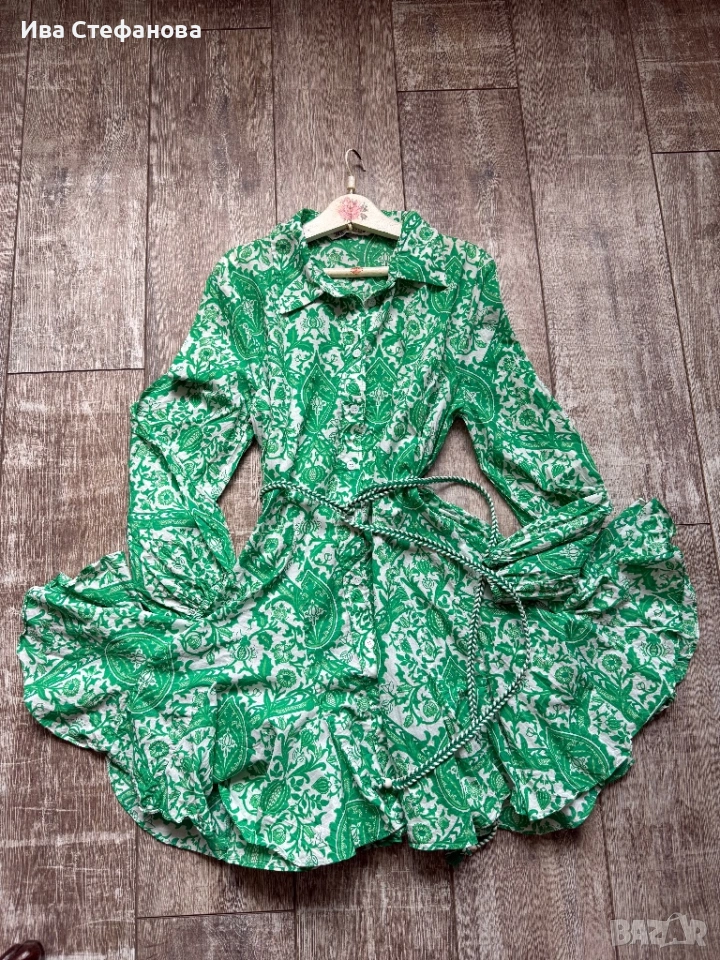 Нова зелена ежедневна елегантна рокля zara Zara Зара 100 % памук памучна разкроена → Обява 52841097