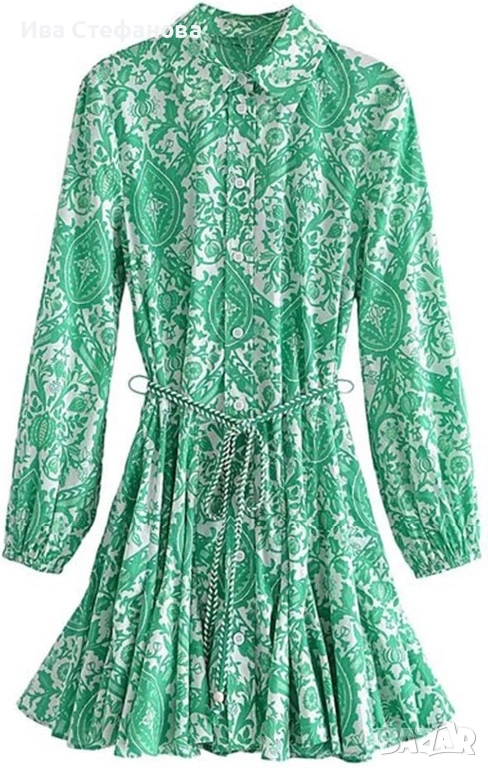 Нова зелена ежедневна елегантна рокля zara Zara Зара 100 % памук памучна разкроена
