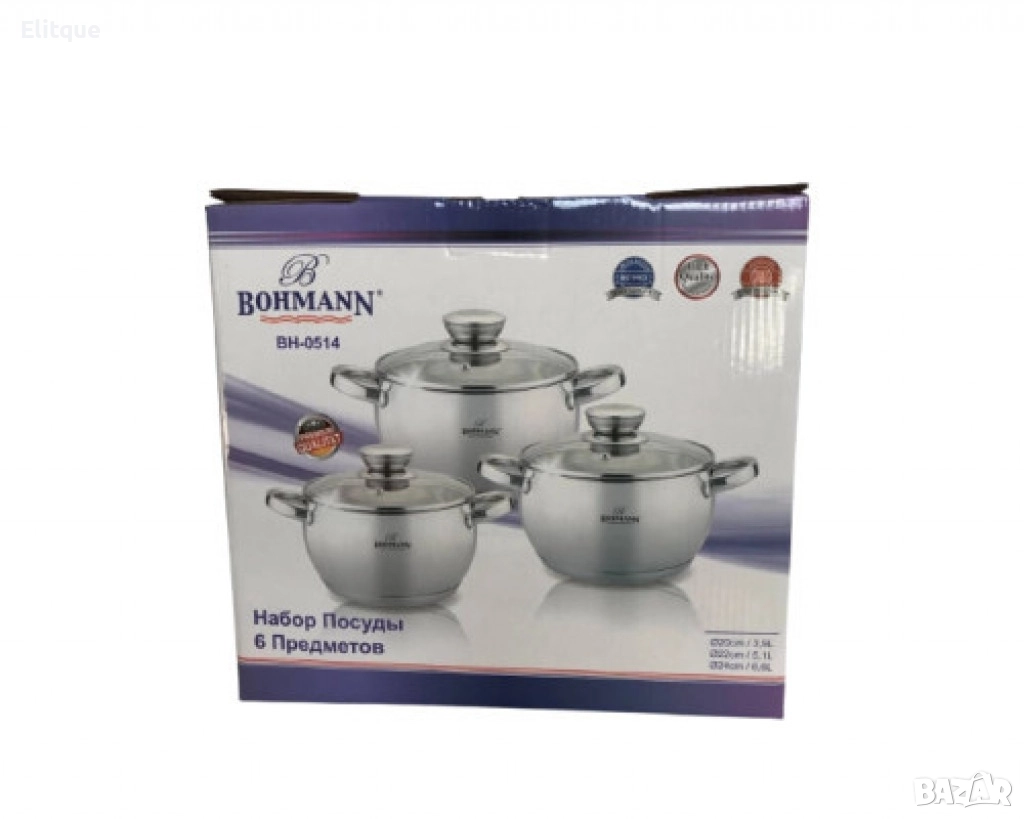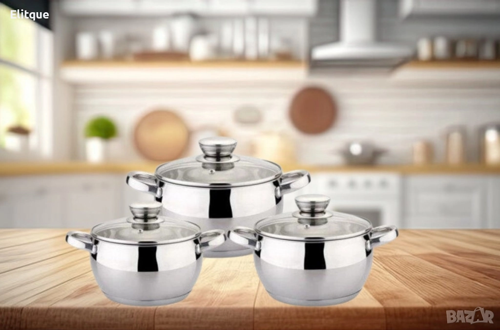Комплект тенджери, 20/22/24см. 3.9/5.1/6.6л., Неръждаема стомана.