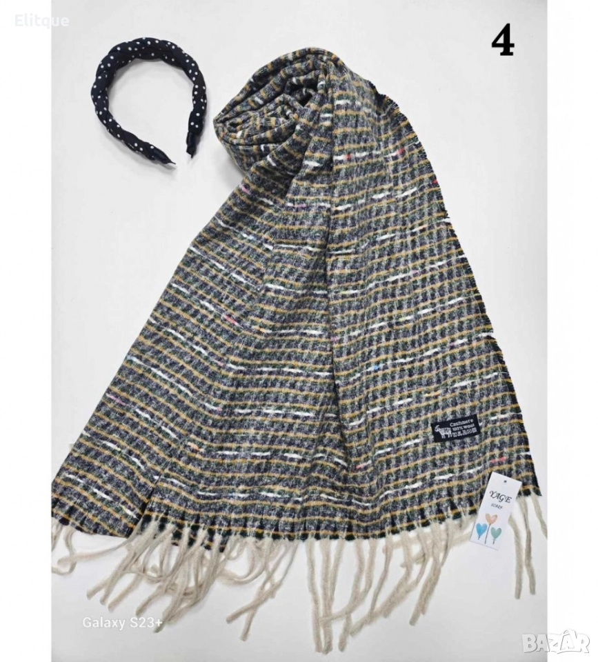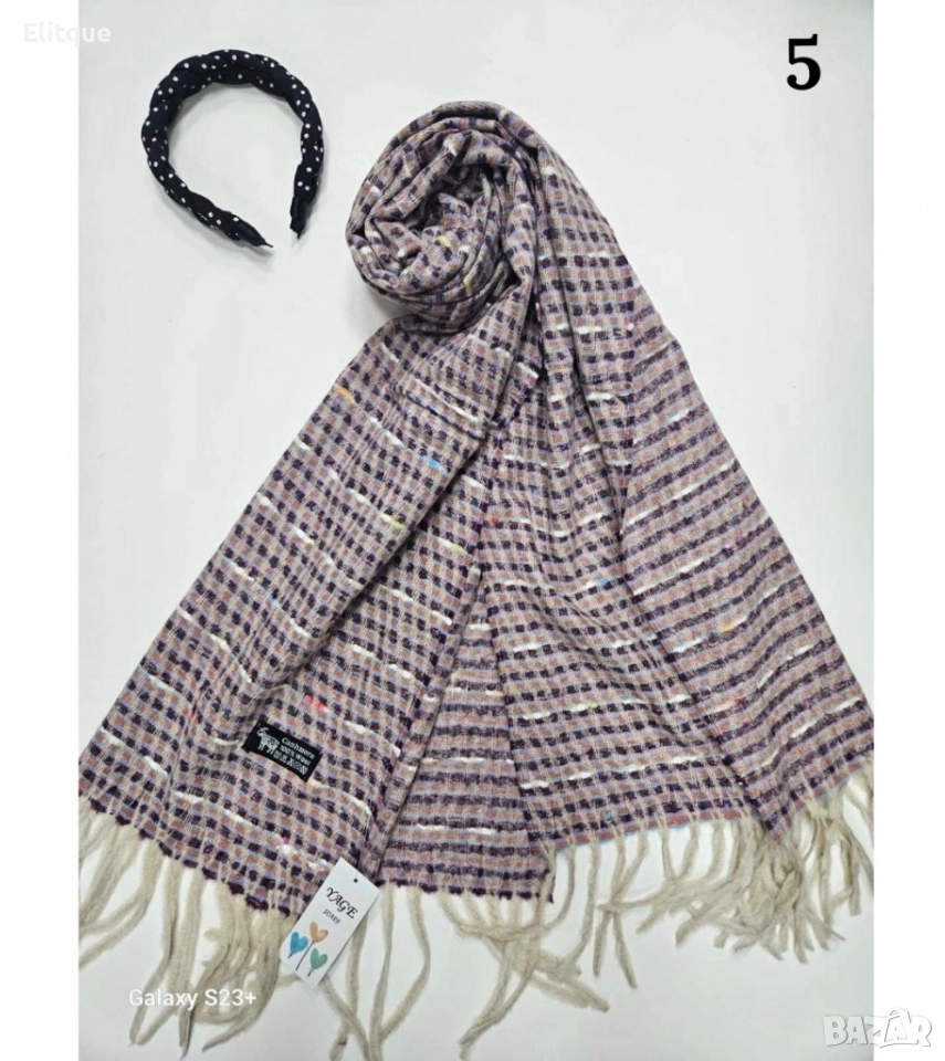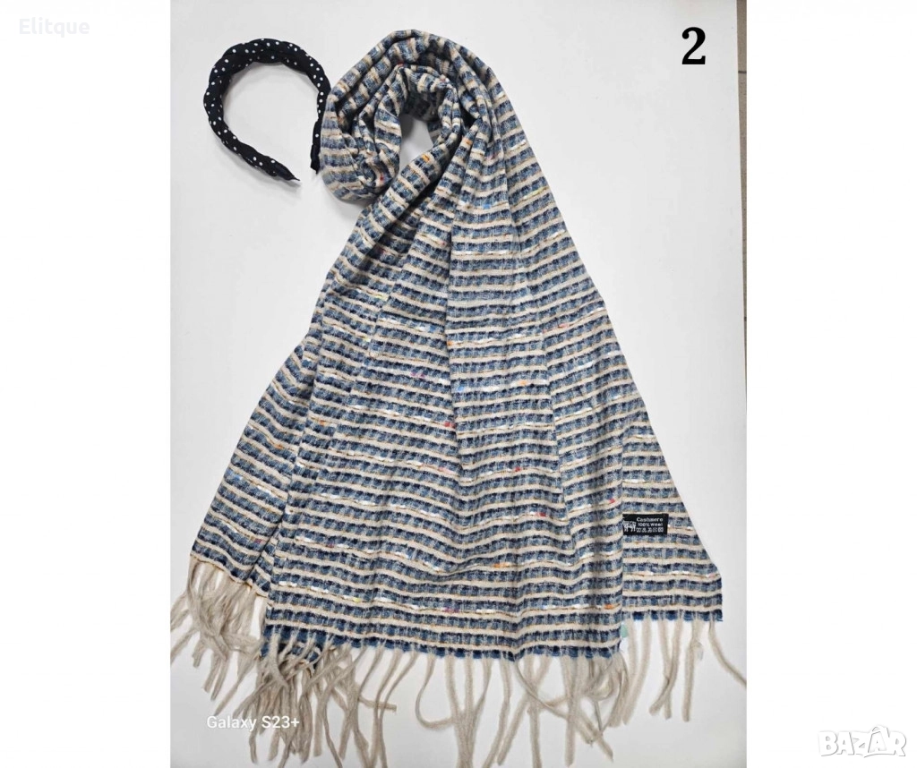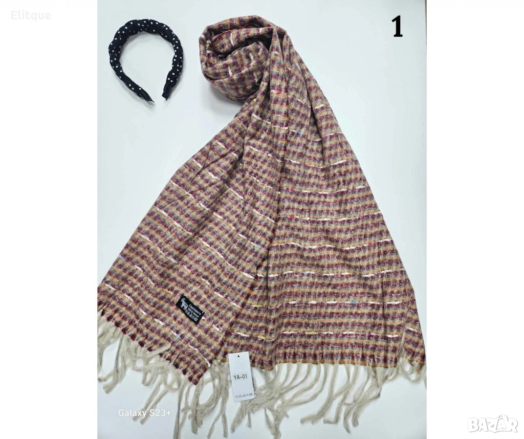 Материал: Висококачествен микс от вълна и памук; Размери: 200 см x 70 см; Вариант 1: вишнево с кафяви и бели акценти; Вариант 2: морско синьо със светли акценти; Вариант 3: бежов с червени и бели акценти; Вариант 4: черен с оранжеви и бели акценти; Вариант 5: кафяв с бежови и бели акценти; Вариант 6: светли тонове на бежово с черни и бели акценти; Декоративни ресни в края; Лесна поддръжка: подходящи за ръчно пране при ниска температура; Различни цветови комбинации, които подхождат на всяко облекло; Лек и удобен за носене във всякакви метеорологични условия.