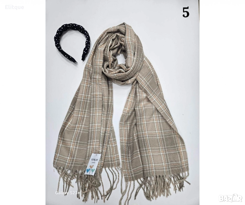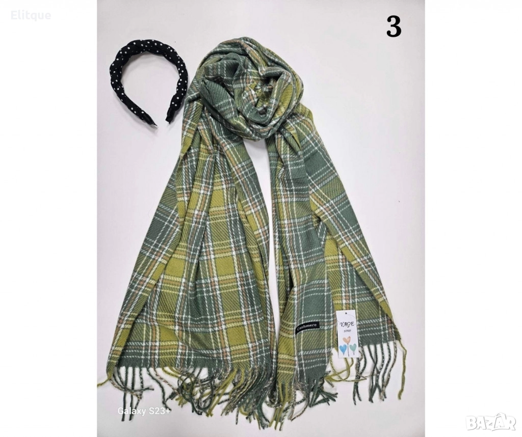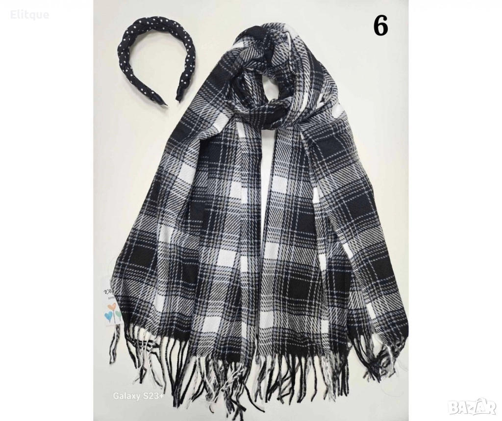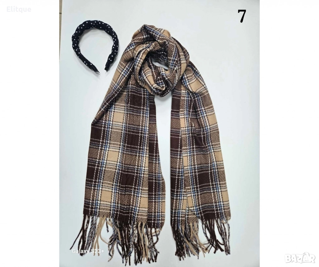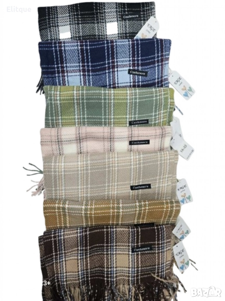 Размер: 70 x 200 см, подходящ за носене като шал или наметка; Достъпен в 7 различни цветови комбинации: черно, синьо, зелено, бежово, кафяво и други.; Вариант 1: съчетаващ кафяви, бежови и бели нюанси, с ресни в краищата; Вариант 2: тъмносини и светлосини тонове, с червени и бели акценти, с ресни в краищата; Вариант 3: зелени и жълтеникави тонове, с ресни в краищата; Вариант 4: нежни розови и кремави тонове, с ресни в краищата; Вариант 5: бежови тонове с бели акценти, с ресни в краищата; Вариант 6: черно-сиви тонове с бели акценти, с ресни в краищата; Вариант 7: кафяви и бежови тонове с бели акценти, с ресни в краищата; Лесен за поддръжка – препоръчително е да се пере на ръка или в пералня при деликатен режим.
