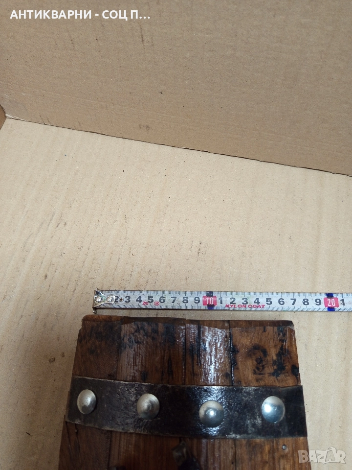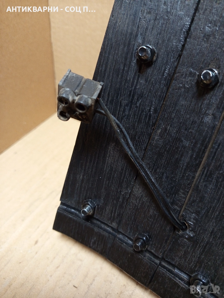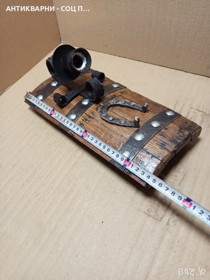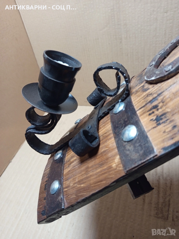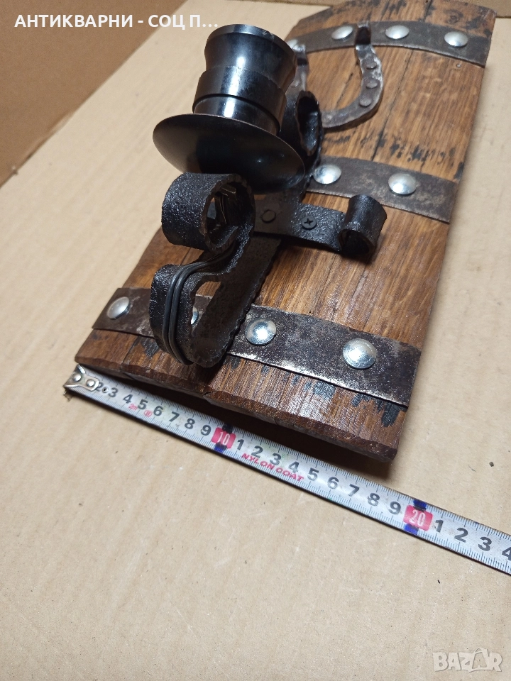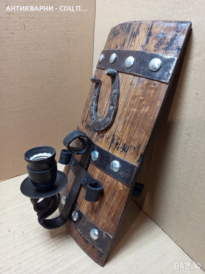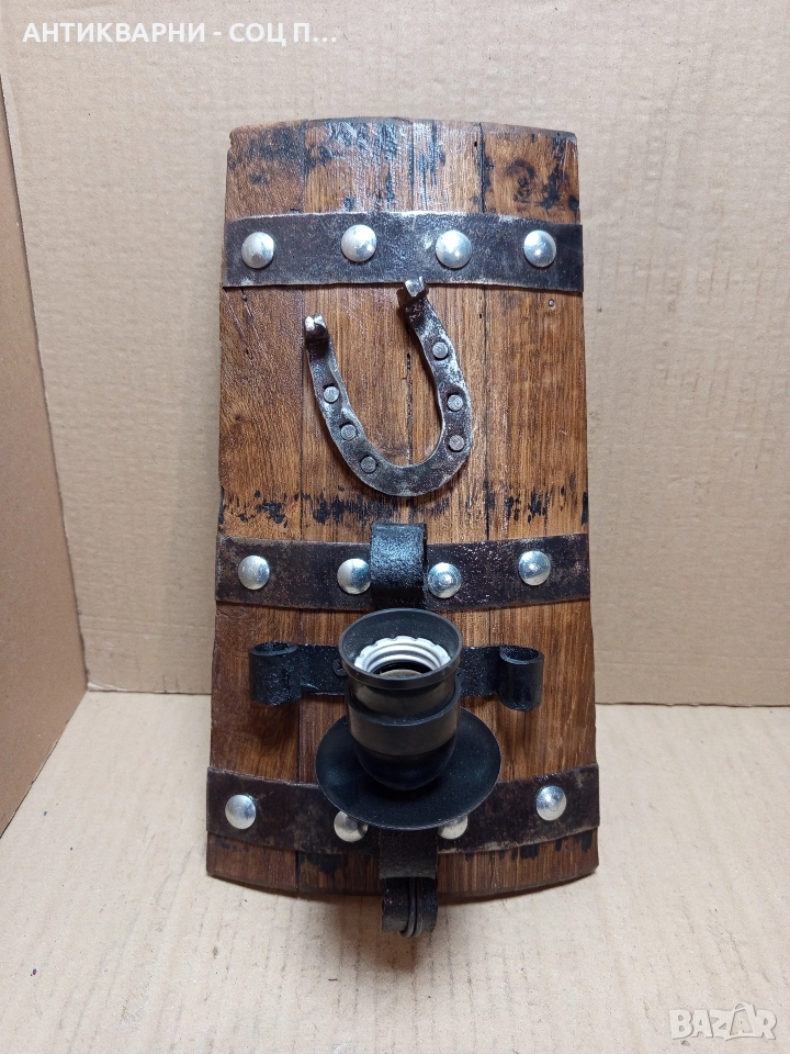 Стара Ръчно Изработена Стена Лампа От Дъбово Буре.