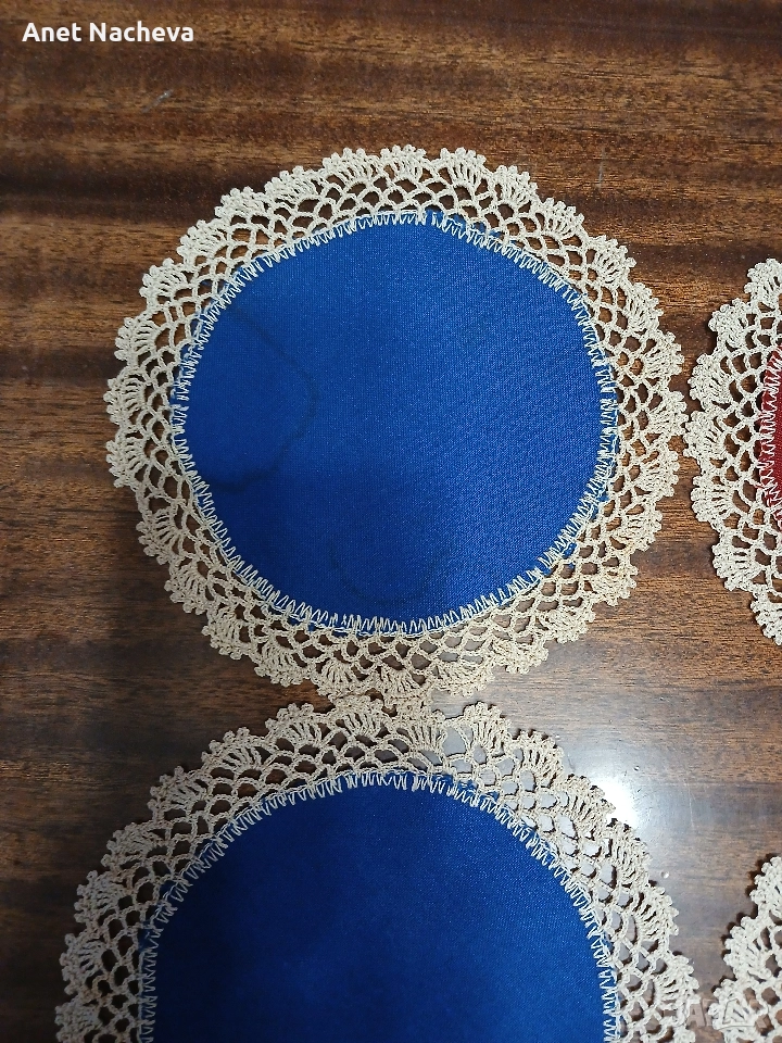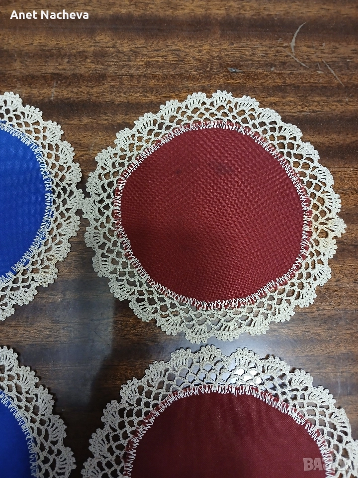 Цената е за един брой. Налични 4 броя. Диаметър - 16см, платът е финен, конец памучен.За любител на тишлайфер под чаша.