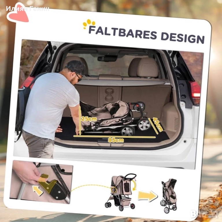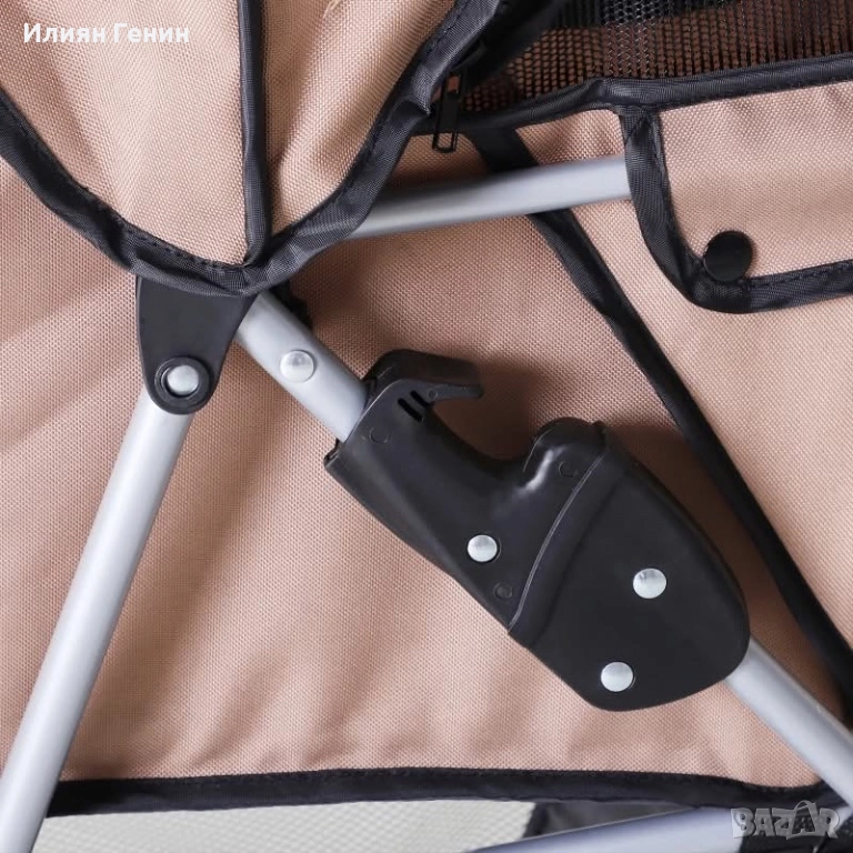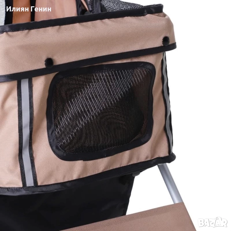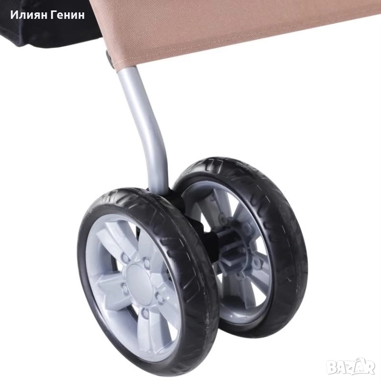 Количка за кучета, Кучешка количка до 10 кг, Сгъваема, Кошница за пода, 2 поставки за чаши, Сенник, Кафяво кафе - 120.00лв.