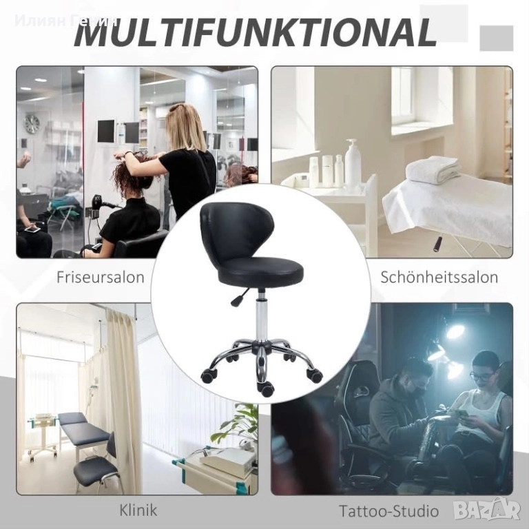 Ергономичен дизайн: Столчето за салон съчетава модерен дизайн с функционалност – кръглата седалка и обгръщащата облегалка ви предлагат оптимална опора и стил в едно.