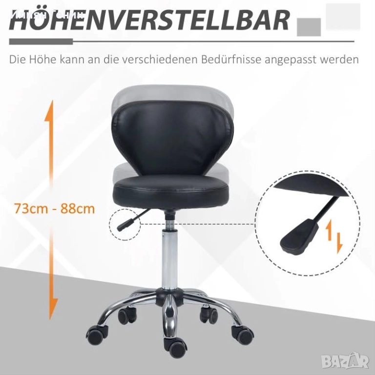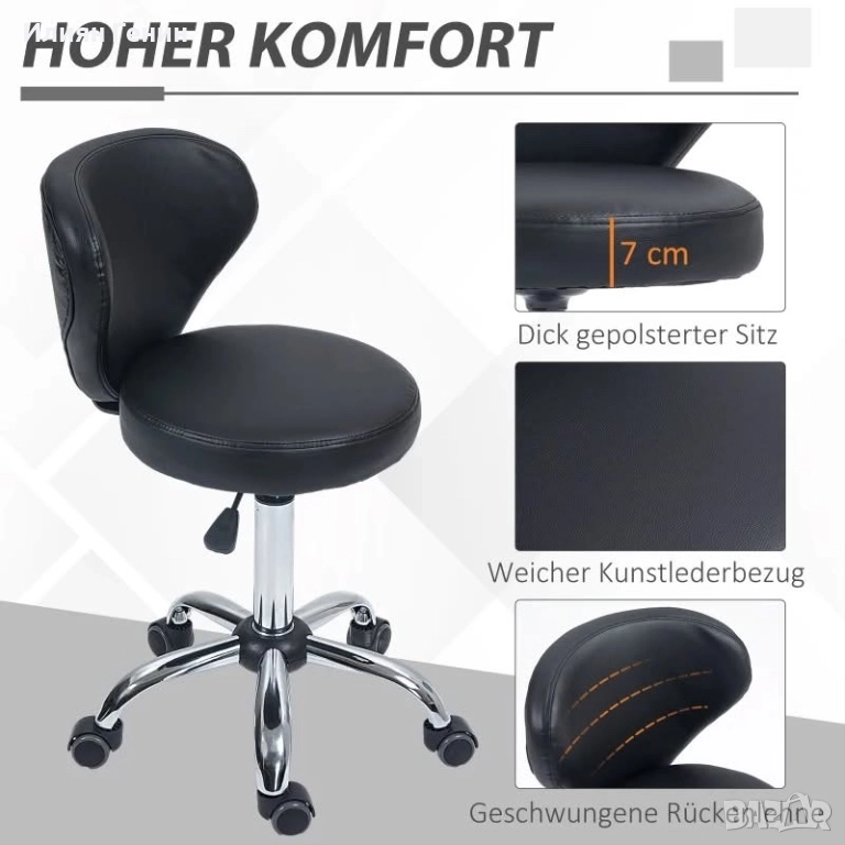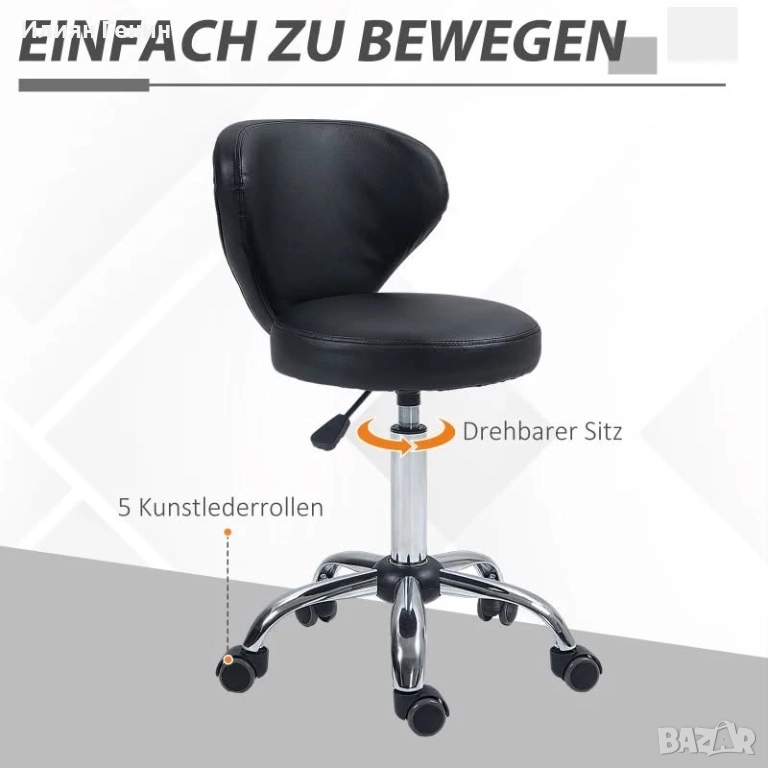 Салонен стол HOMCOM с кожен вид, регулируема височина, до 120 кг, стоманена рамка, черен - 150.00лв.