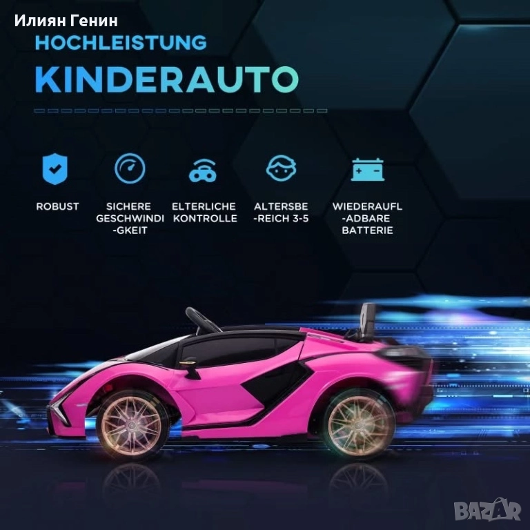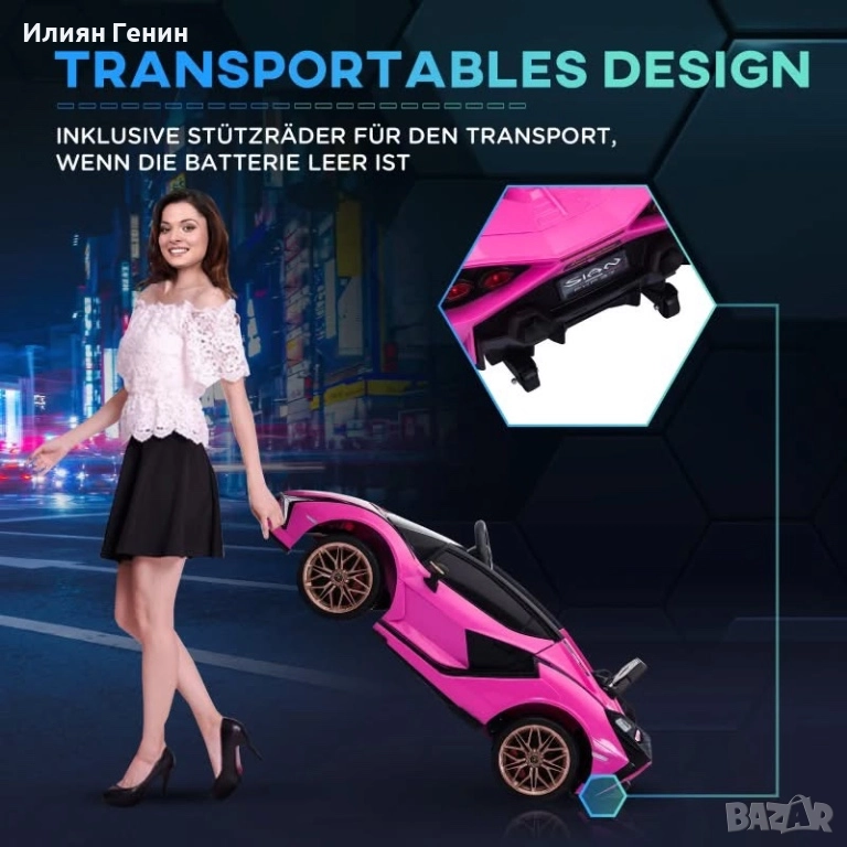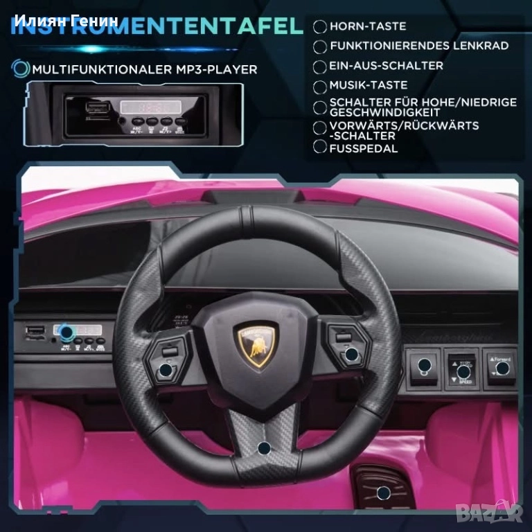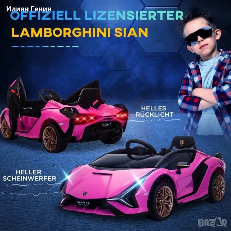 Детска електрическа кола HOMCOM, Lamborghini, 3-5 км/ч, с дистанционно управление, за 3-5 години, розова - 300.00лв.