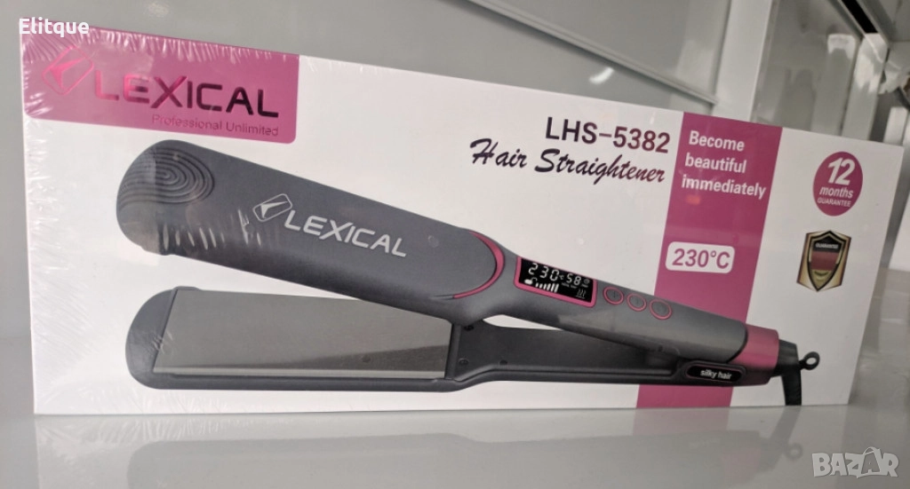 Захранване: 220-240V~50/60 Hz; Мощност: 65 W; Размер на плочата: 44 x 106 mm; Материал на плочите: Титан; Нагревателен елемент: PTC Температурни настройки: 8 опции от 80°C до 230°C; Време за загряване: 80 секунди; Дисплей: LCD; Захранващ кабел: Въртящ се на 360°; Примка за окачване: Да.