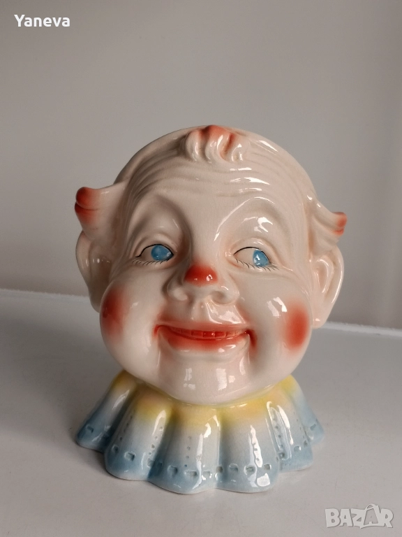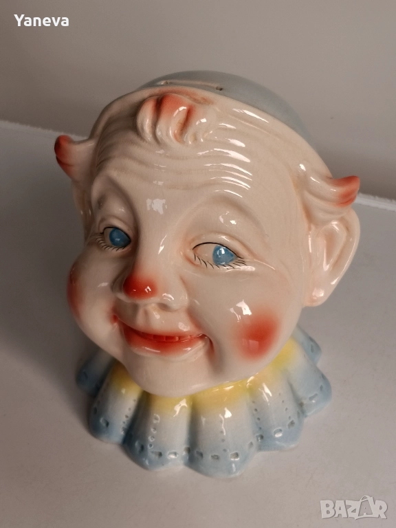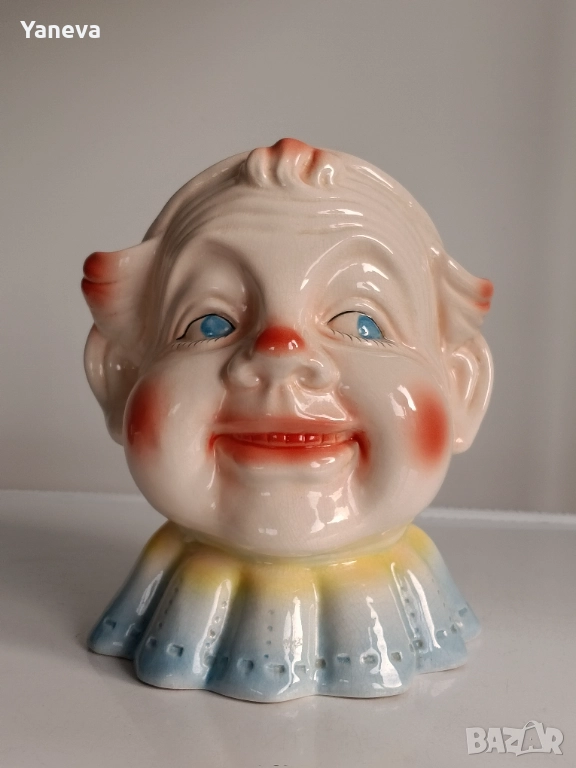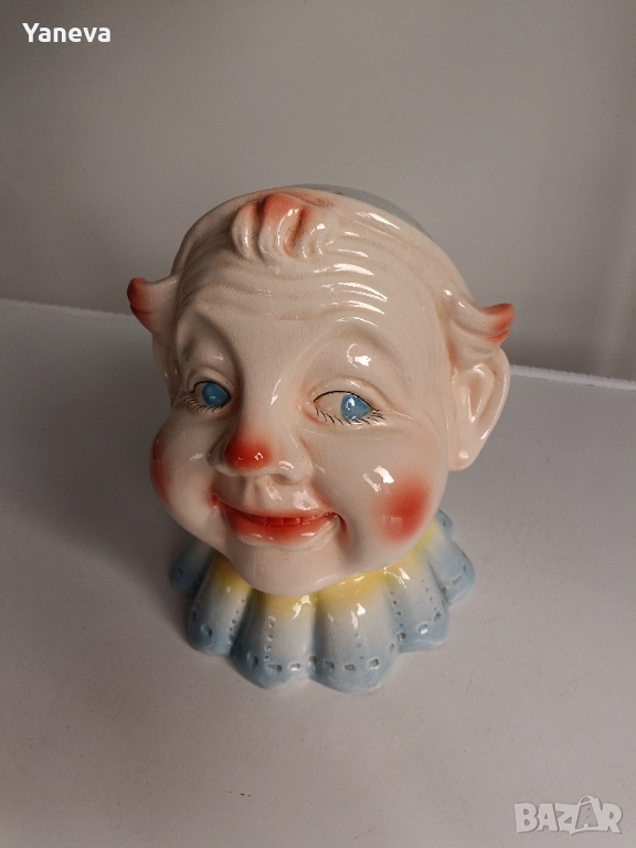 Ретро порцеланова касичка във формата на глава на клоун от Англия. Размер 20 / 20 см. Цена 60 лв.