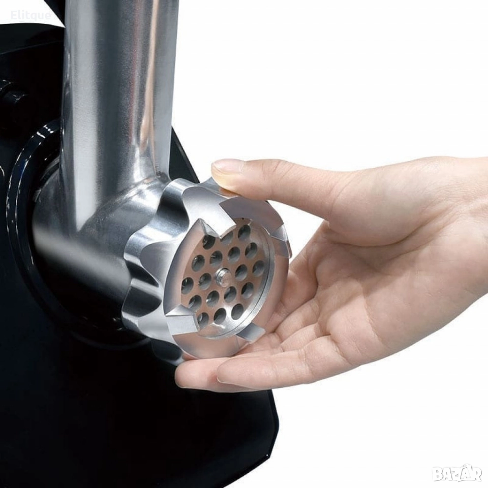 Напрежение: 20-240V~50/60 Hz; Мощност: 500 W.; Изцяло меден мотор с EMC; Пластмасов корпус с преносима дръжка; Бутон за вкл./ изкл. и обратна функция; Подвижна пластмасова тава за храна; 2 метални диска за рязане: 5 мм., 7 мм.; Тръба за пълнене на колбаси; Приставка