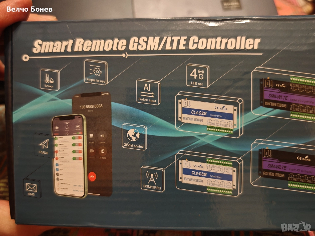 Продавам CL8-GSM контролер, подходящ за дистанционно управление на електрически устройства чрез GSM мрежа. Моделът е надеждно решение за контрол на врати, портали, осветление, помпи, алармени системи и други електроуреди.