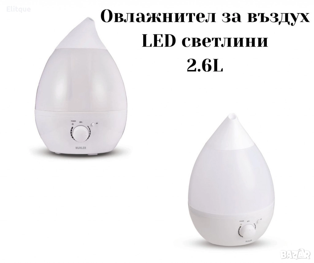 Тип овлажняване: Ултразвук; Подходящ за помещения до 25 m2; Резервоар за вода: 2.6L; Регулируем обем на парата; Време на работа: 7-12 часа; Ниво на шум ≤ 35dB; Ултразвукова технология за студена пара; LED лампа с различни цветове; Автоматично изключване при празен резервоар; Светлинен индикатор за работа; Мощност: 25W, 220-240V, 50-60 Hz; Цвят: Бял; Гаранция: 24 месеца.