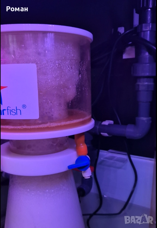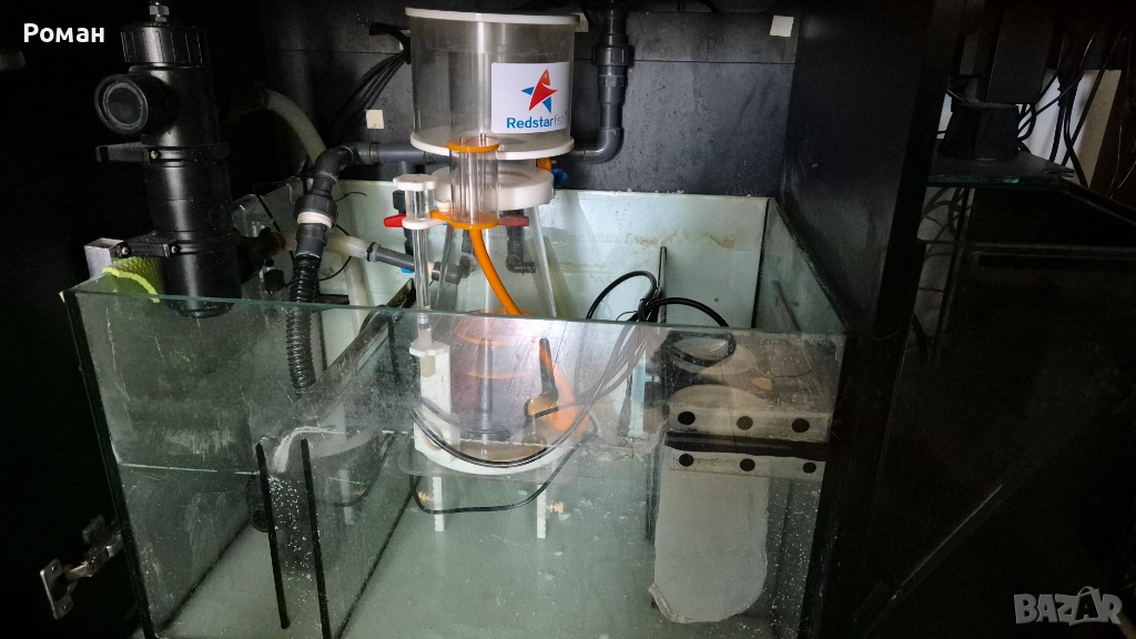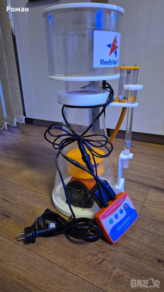 Белият дроб на всеки морски аквариум - Скимер RED STARFISH SC-180 с DC помпа 4000л. за отстраняване на органичните замърсители в аквариума. голяма чаша, по рядко се чисти. Безшумна работа. За аквариуми от 500 до 700л. Ползвам го на RedSea425 и се представя отлично. Важно за този скимер е устойчивия на удар плексиглас и опростената му работа (реглаж на мощност на помпата и ниво на водата в скимера). След изключване изчаква 3мин и след това се включва, което предотвратява препълване на чашата. Сухо и мокро скимиране-според настройката.