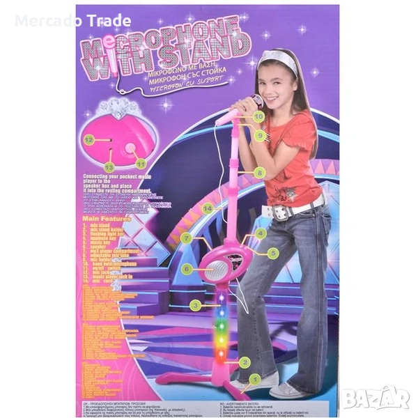 Детски караоке микрофон Mercado Trade, Със стойка и светлини, снимка 1 - Музикални играчки - 52842685 Детски караоке микрофон Mercado Trade, Със стойка и светлини, снимка 2 - Музикални играчки - 52842685 1/2