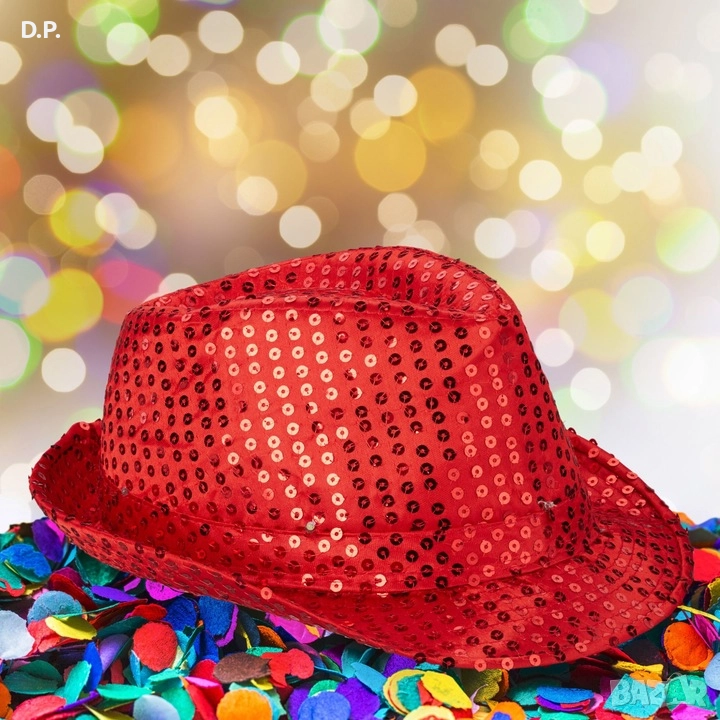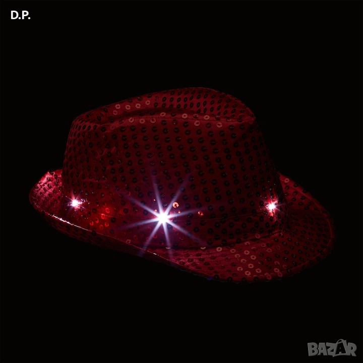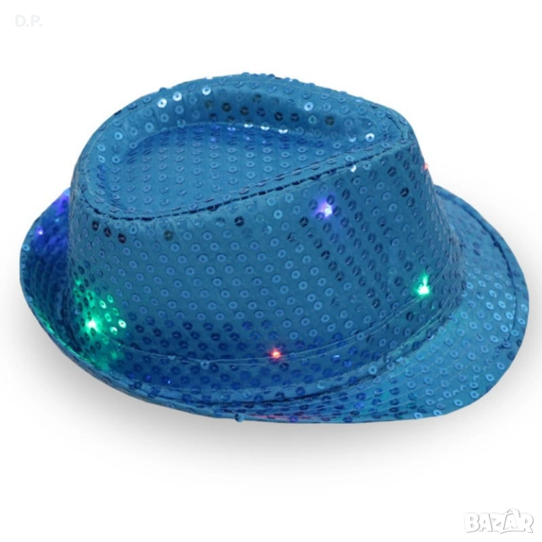 LED светеща парти шапка с пайети,изцяло покрита с пайети.