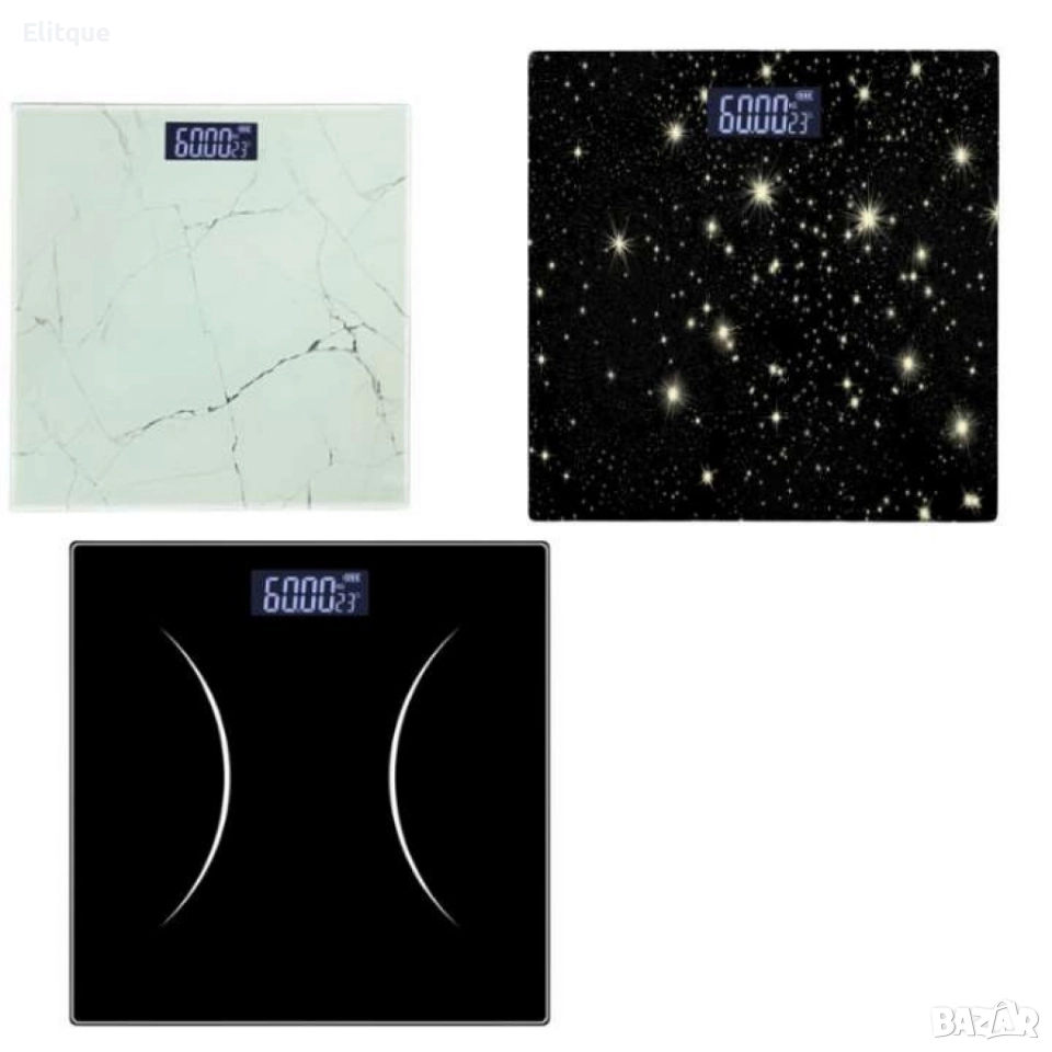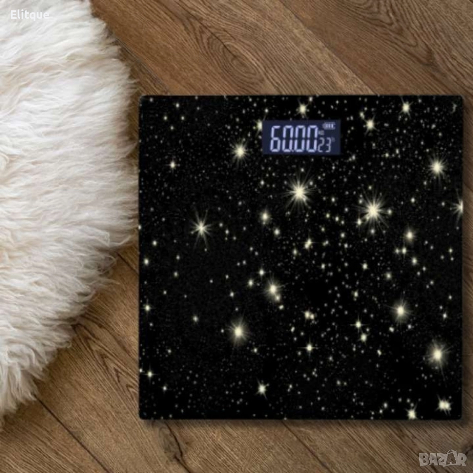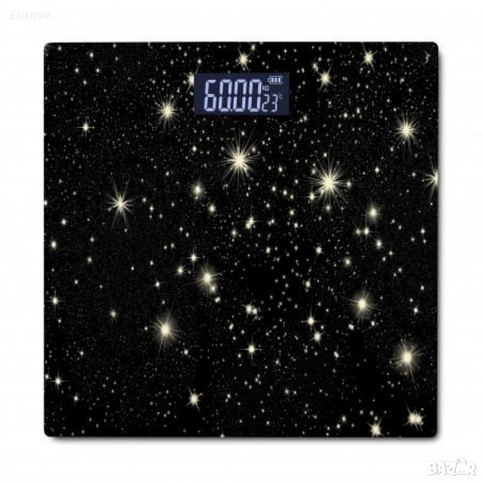 Кантар за тегло дигитален,батерии 2хААА, LCDекран, 180кг., черен, звезди, бял мрамор