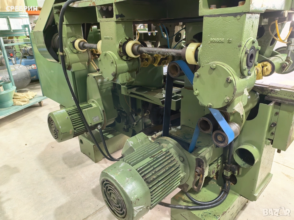 В наличност италианска четиристранка марка SICAR, ревизирана напълно, сменени лагери на всички 5 шпиндела + симеринги на всички пневматични цилиндри на претискането. Подходяща за дюшеме, ламперия и паркет. Лява и дясна глава плаващи навътре, навън, нагоре и надолу. Пета глава подходяща за разцепване с макс диск 180мм и макс височина 40мм. Вариаторно подаване от 4 до 24 метра в минута. Автоматично качване и сваляне на горната глава и пневматично притискане на детайла. За повече информация по телефона.Адрес село Черганово на 2 км от Казанлък срещу фабрика за дървени къщи ECOZID darvodelskimashini.alle.bg