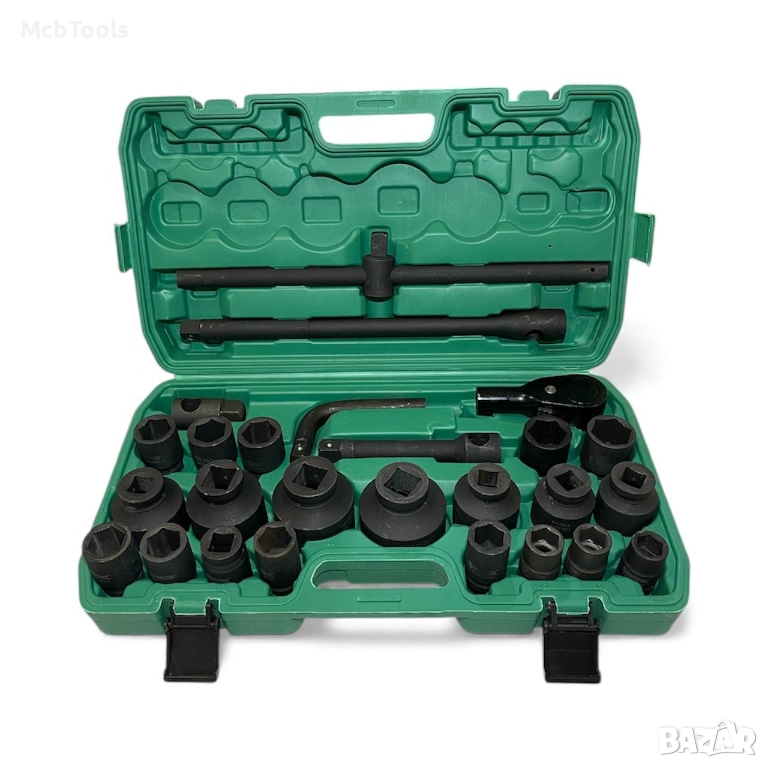 • 20 ударни вложки (6-стенни): 21, 22, 23, 24, 26, 27, 28, 29, 30, 31, 32, 34, 36, 38, 41, 46, 50, 55, 60, 65 мм