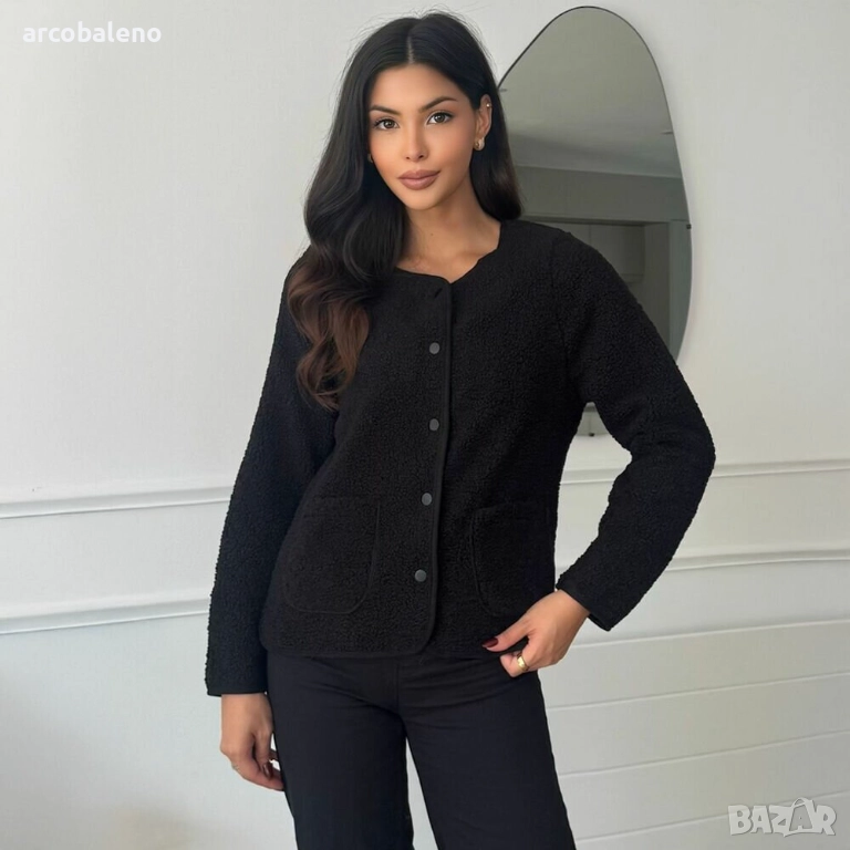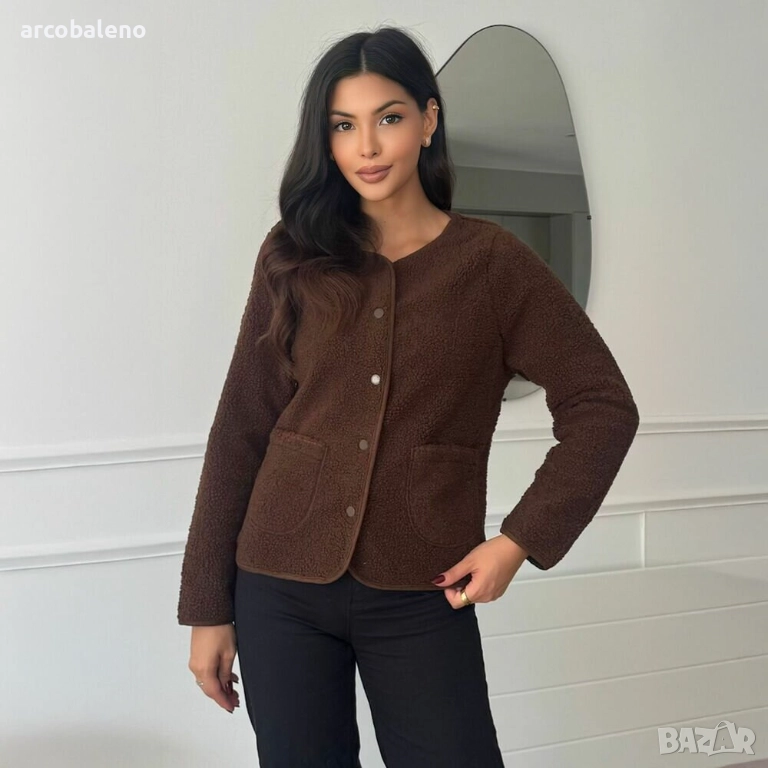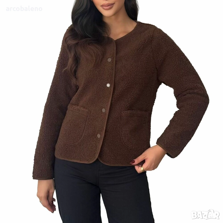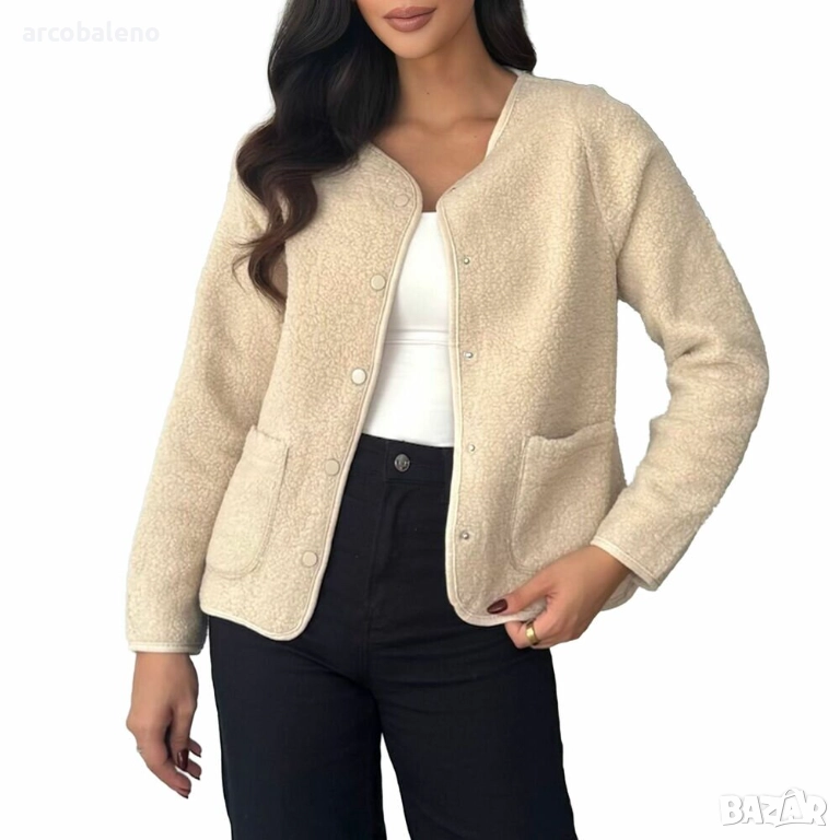 Открийте вечен комфорт и стилна елегантност с нашата най-нова колекция от това уютно яке, което не само ви държи топло, но и допълва всеки тоалет. Изработено от висококачествен, мек материал, това яке предлага прекрасно усещане - идеално за спокойни дни или специални поводи. Изисканата кройка и изчистените линии ласкаят фигурата ви, а практичните джобове осигуряват допълнителна функционалност. Идеално за преходно време, това яке може да се носи ежедневно или като стилен ансамбъл за свободното време. Независимо дали се разхождате в парка или се срещате с приятели, винаги ще бъдете облечени, за да впечатлите! Това яке е предназначено за жени, които следят модата и ценят както комфорта, така и стила. Комбинирайте го с дънки или пола за безпроблемно шик визия, която е задължителна част от гардероба ви.