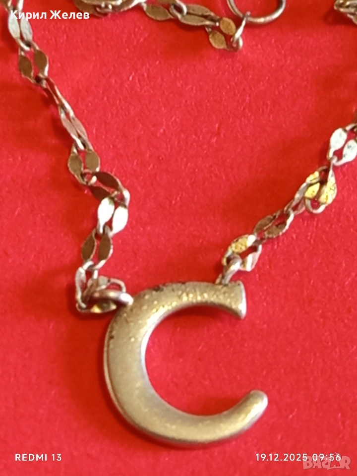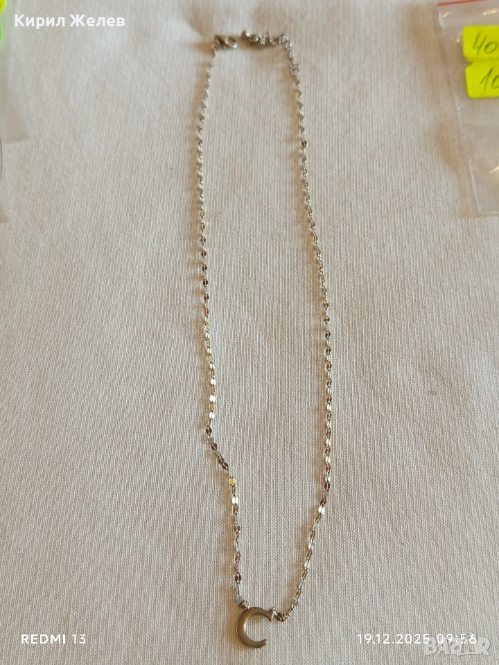 Нежно сребърно колие с буква С елегантен дизайн 45729
