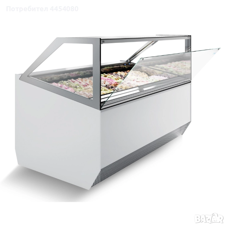 Витрината работи в температурен диапазон от -16°C до -14°C, което гарантира оптимални условия за съхранение и сервиране на сладолед. Вентилираното охлаждане осигурява равномерна температура във всяка зона, а автоматичното размразяване улеснява поддръжката и ежедневната експлоатация.
