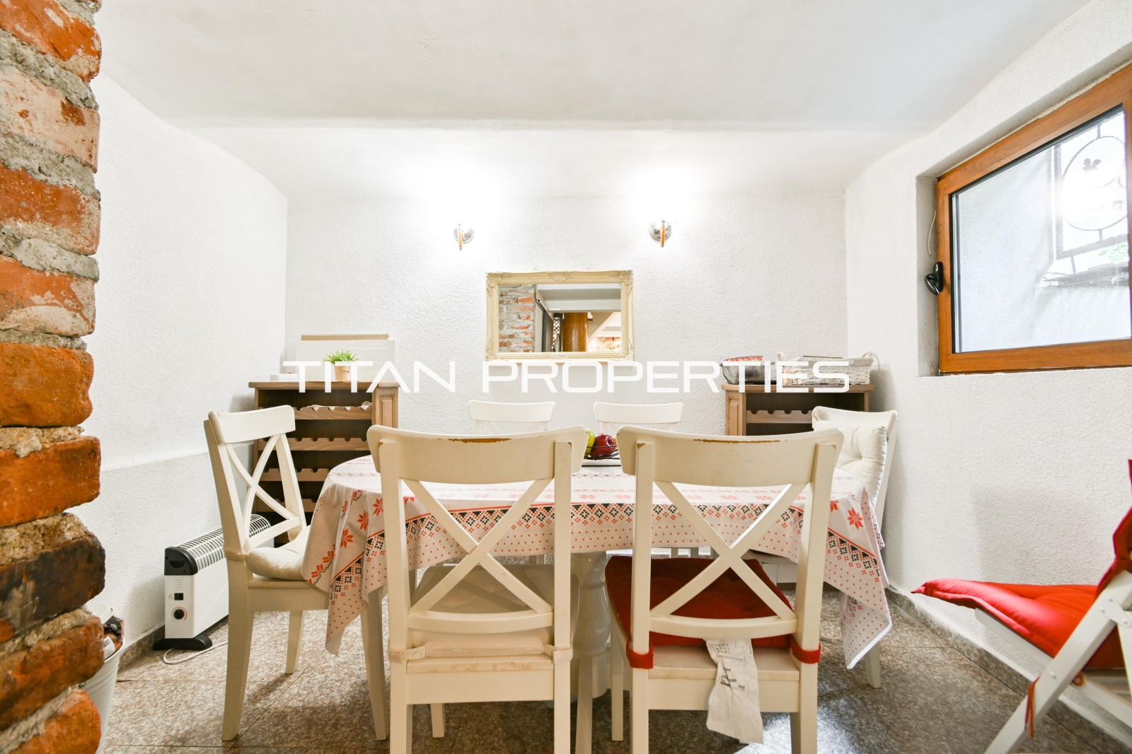 Титан Пропъртис - офис Хиподрума с радост предлага на Вашето внимание къща за продажба в Център-ЦУМ, София. Жилището с обща площ 143 кв.м. се простира в сутерен и три етажа от тухлена конструкция. Изложението Изток/Запад/Север/Юг гарантира изобилие от светлина във всички стаи. В сутерена е поместена просторна кухня с трапезария. На първи етаж се намира спалня с баня и тоалетна, допълнителна кухня и веранда. Вторият етаж включва две спални с баня и тоалетна, както и тераса, а на третия още две спални с тоалетна. Имотът е с отопление на електричество.