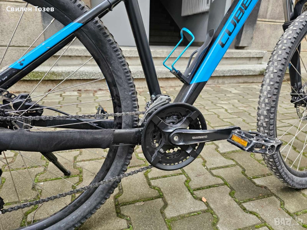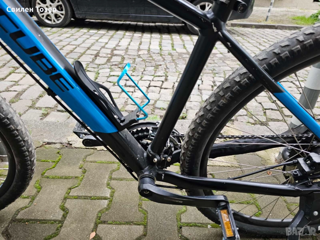 Колелото се води планинско и е купувано от Bike Center с книжка. Разбира се, има драскотини, но като цяло си е здраво и има още доста км. да измине. Иначе по колелото са добавяни някои нови неща, като грипове, оригинална cube степенка, винтили, гуми - по-добро от тези с които идваше колелото, също място за вода и още някои дребни неща. Седалката му е скъсана от зад, но може да се ползва и така. Ако имате въпроси на разположение съм да отговарям. Модела е 27.5 гуми и S рамка