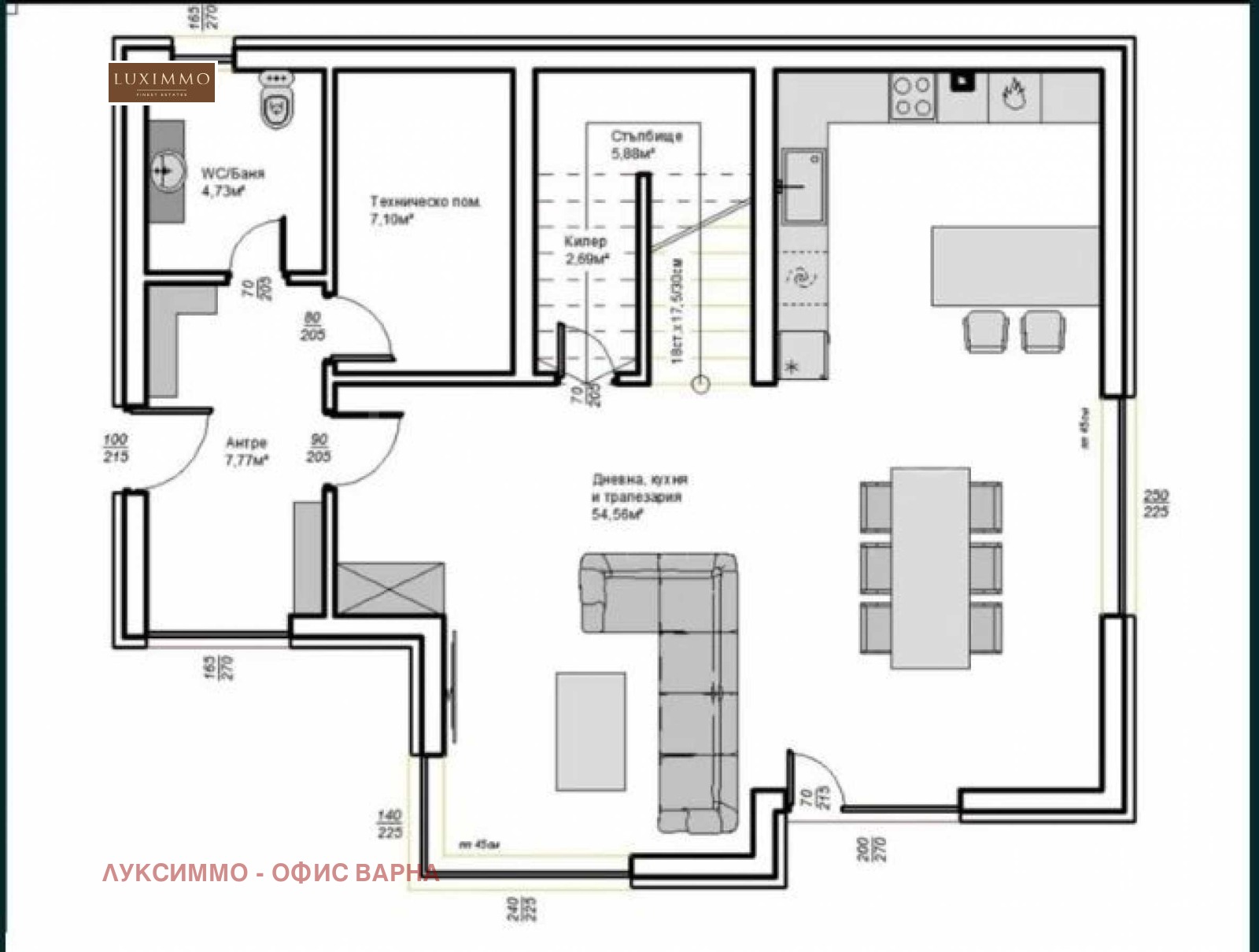 дневна с кухня 54,56 кв.м.