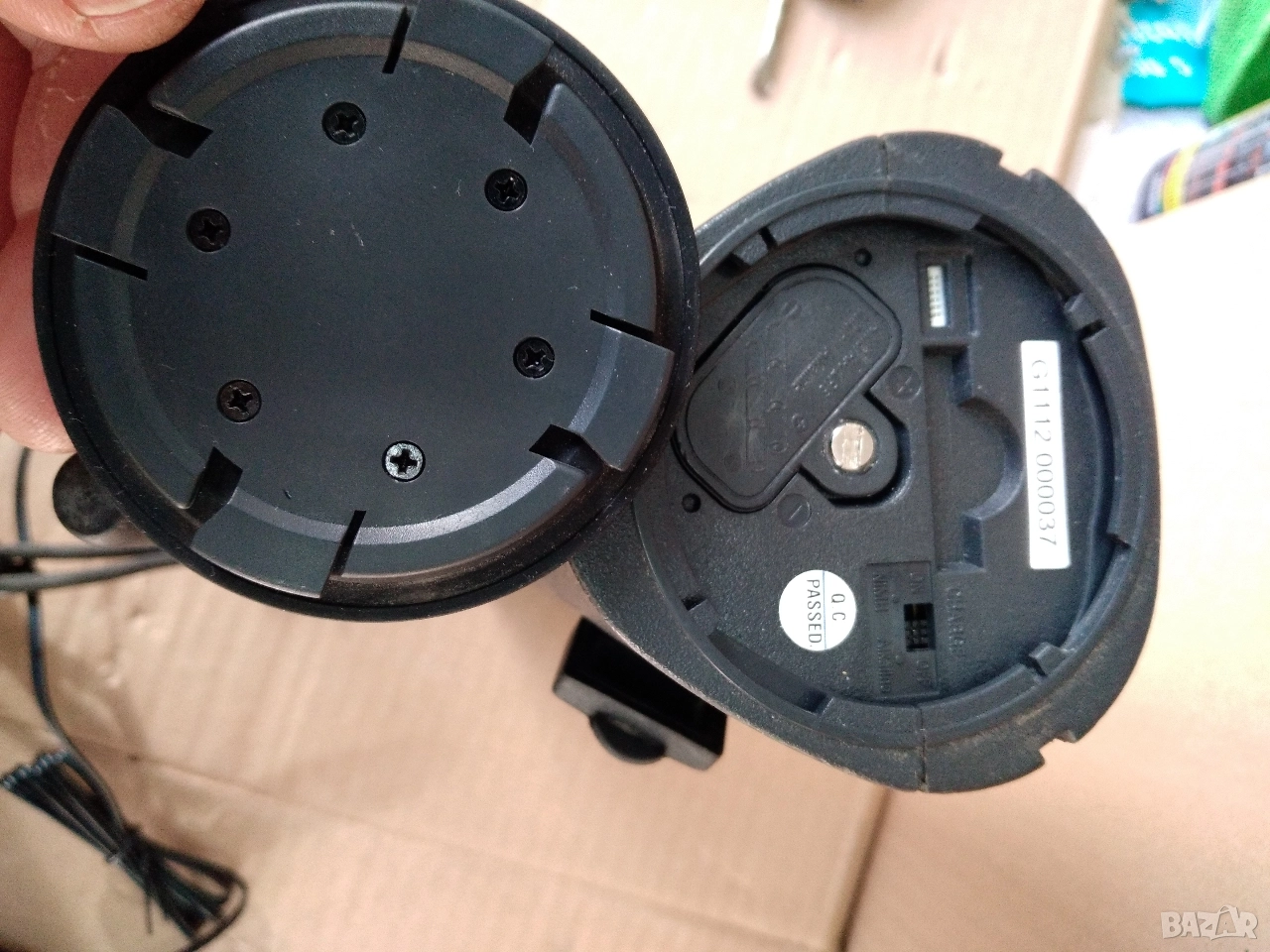 FM радио с гумирани, водоустойчив корпус. Строително радио, подходящо и за къмпинг, риболов, туризъм. Работи с 6 батерии АА или с адаптер 12V. Може да се ползват и акумулаторни батерии Ni-Mh, които се зареждат при включен адаптер. Радиото е ползвано и има следи от употреба, но работи без проблеми.