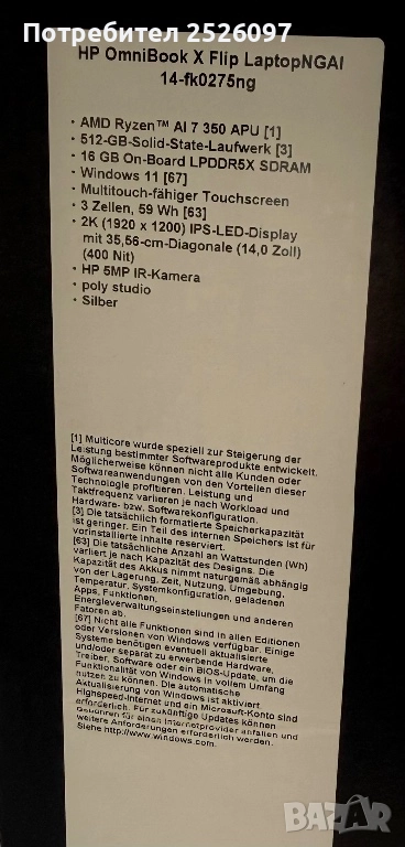Чисто нов тъчскрийн лаптоп HP OmniBook X Flip NGAI 14-fk0275ng закупен от Германия с международна гаранция.