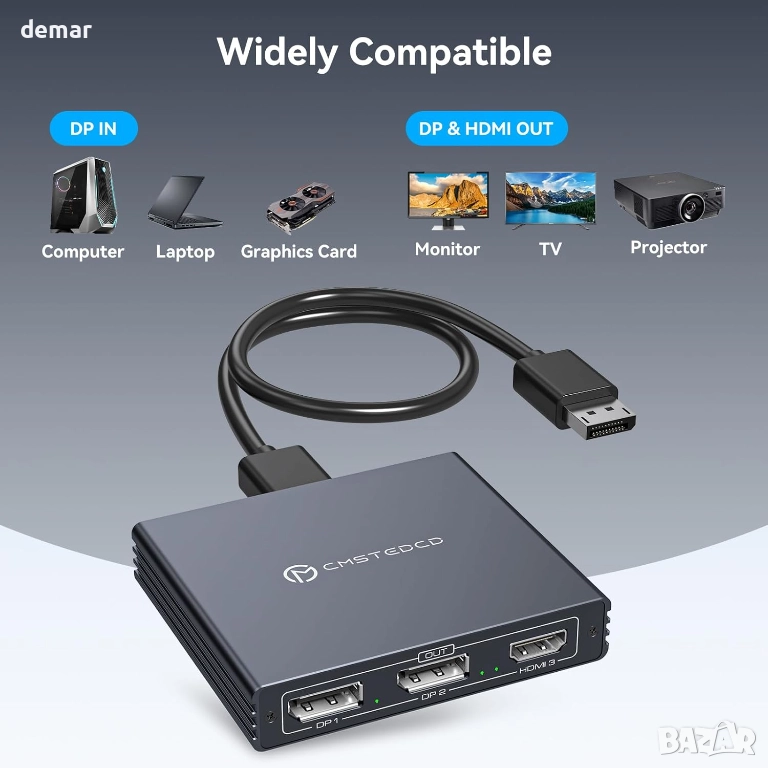 VEDINDUST DisplayPort сплитер 1 вход/3 изхода DP към HDMI и двоен DP