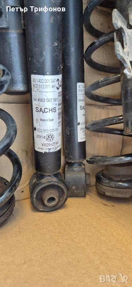 SACHS Оригинални Амортисьори от Polo2014г свалени още като нови и стоят във гаража повече от 10години,със пружини и тампони само задните са без прахоуловител,за въпроси по телефона.