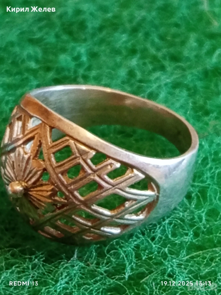 Красив ажурен сребърен пръстен орнаментиран майсторска ръчна изработка 40203