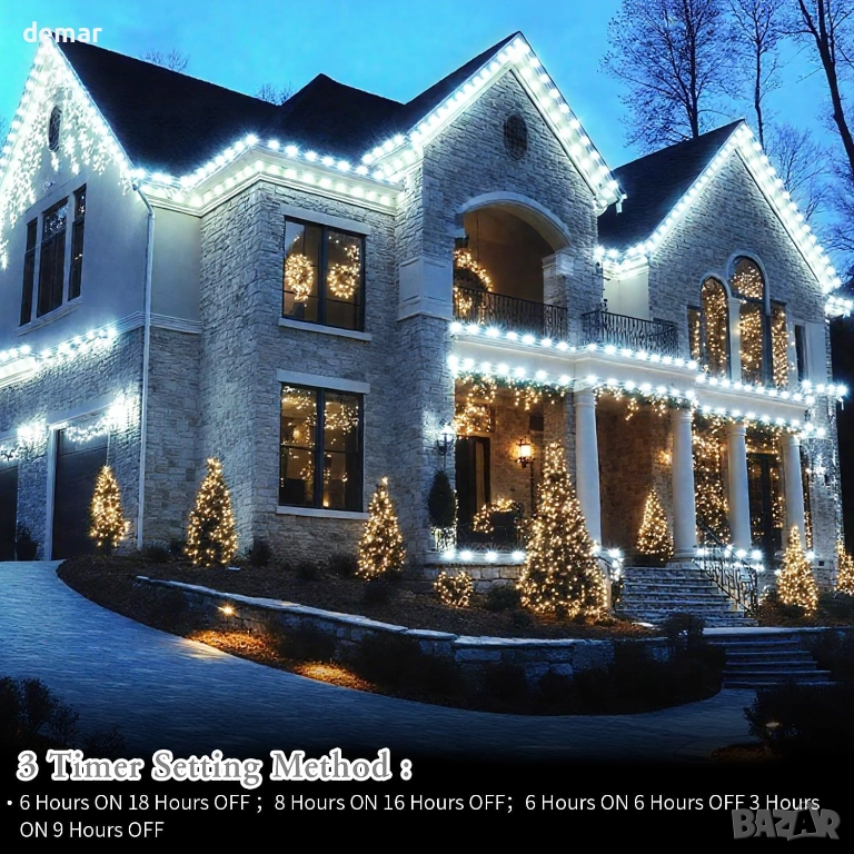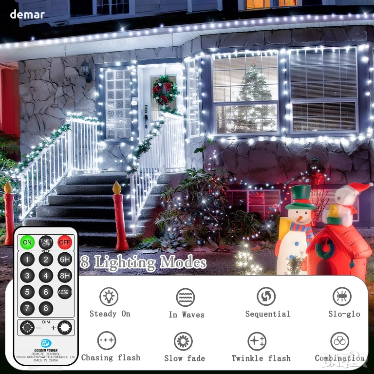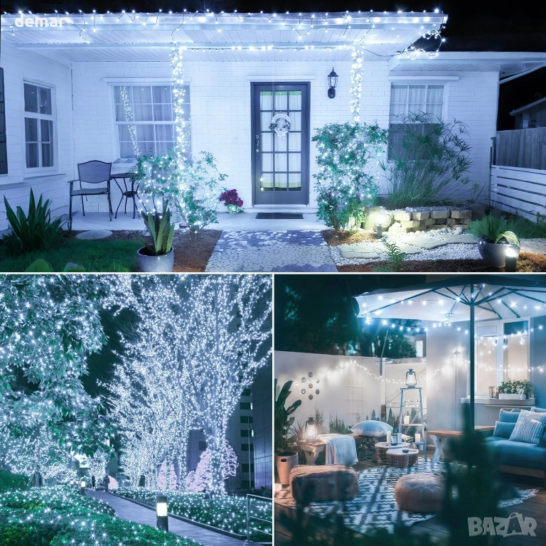 40 метра 800 LED коледни лампички с дистанционно и таймер, 8 режима, студено бяло