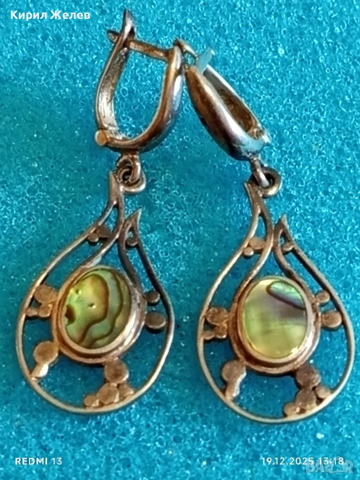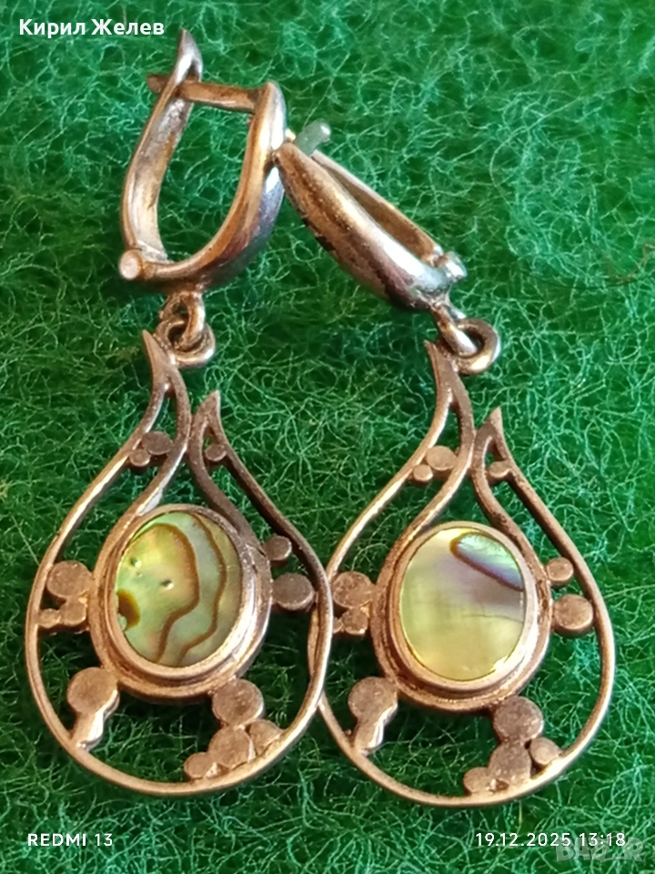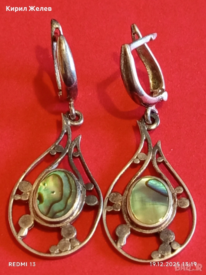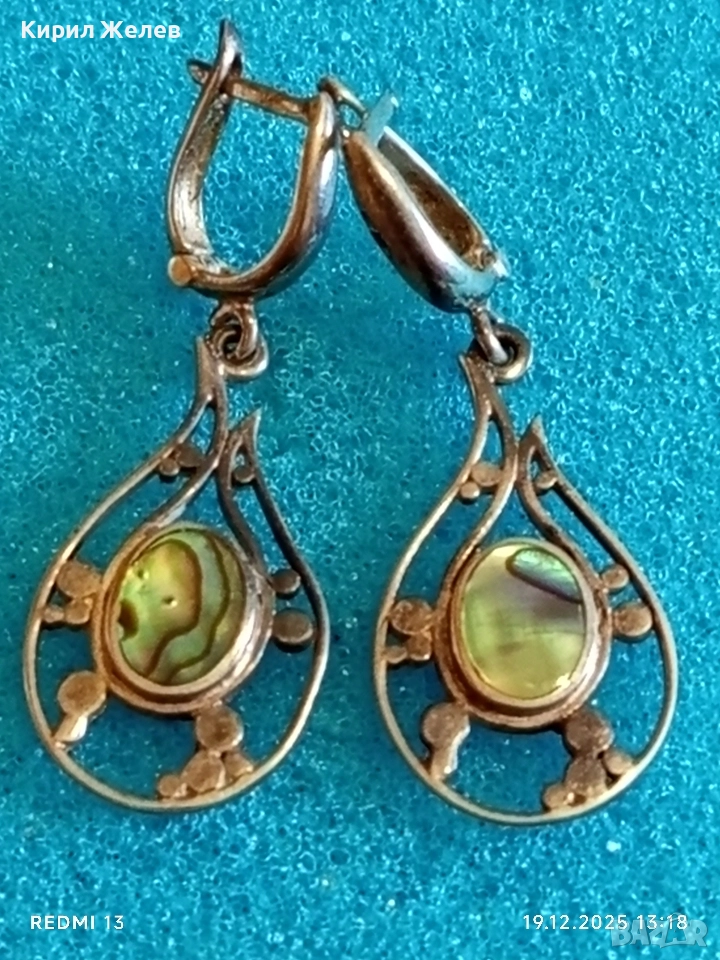 Изящни сребърни обеци с КРАЛСКИ СЕДЕФ уникално красиви винтидж стил 28054