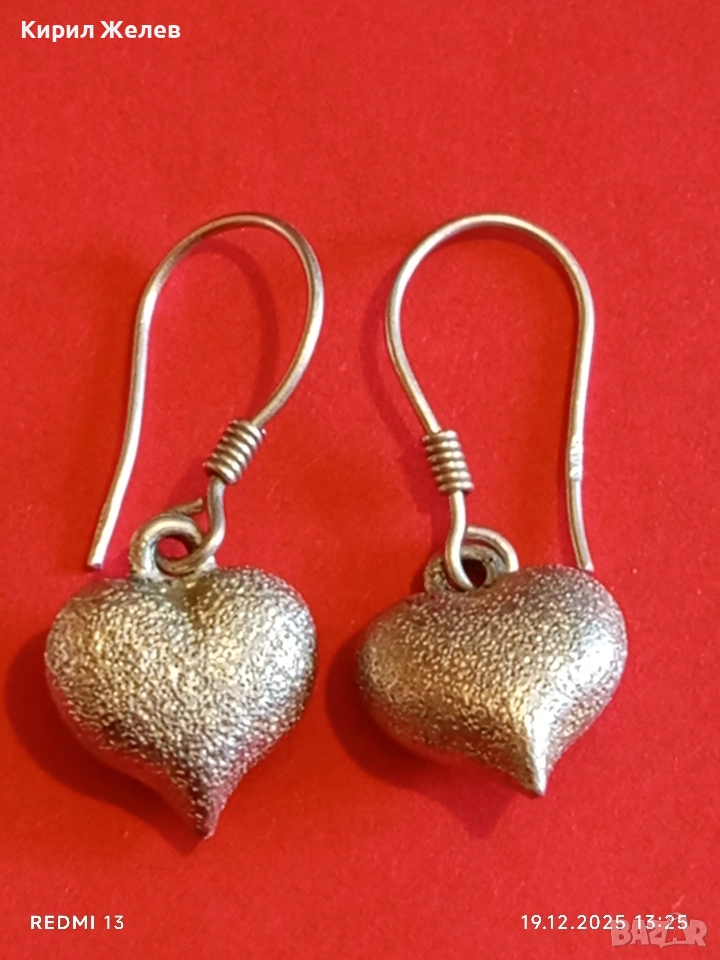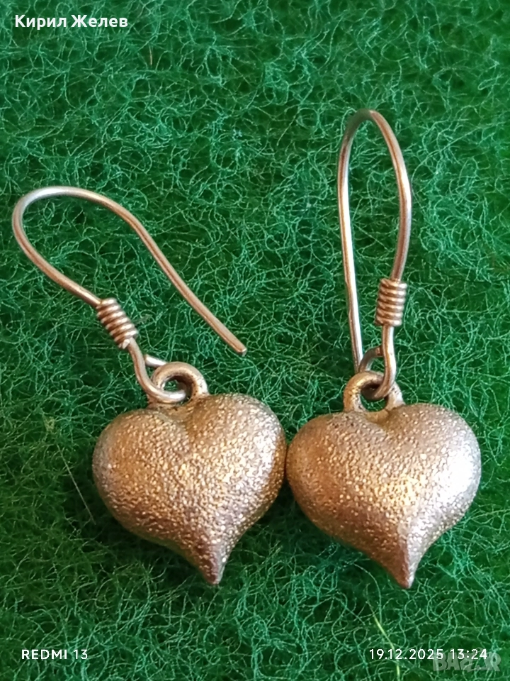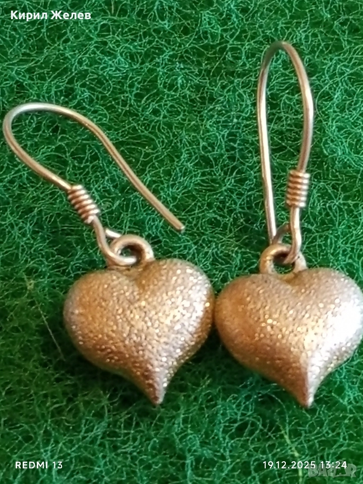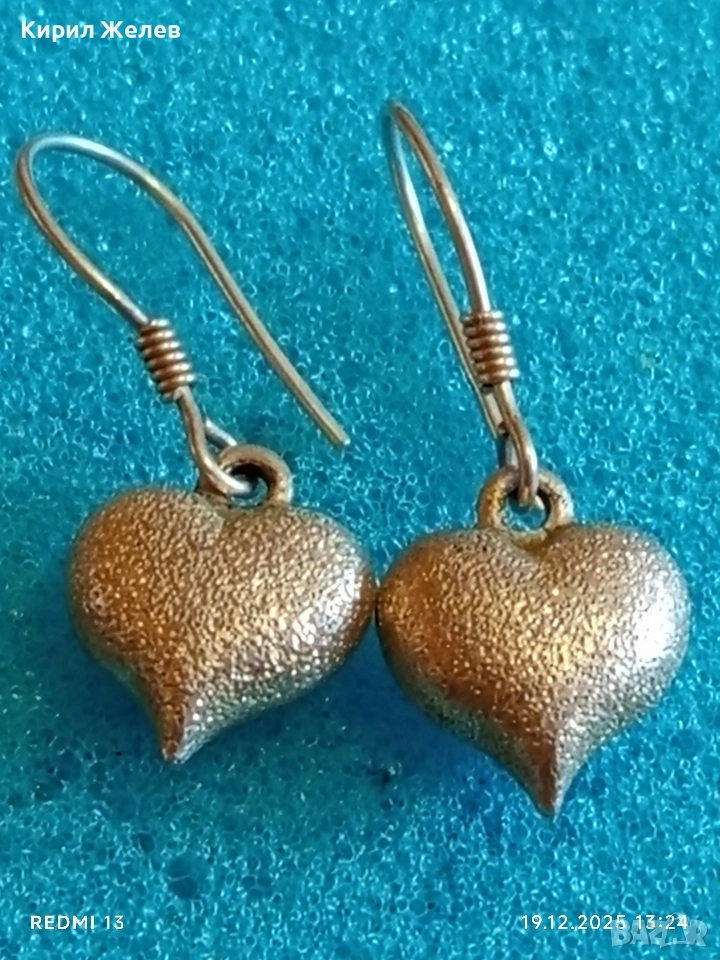 Елегантни сребърни обеци във формата на сърце цвят шампанско ювелирна изработка 36402