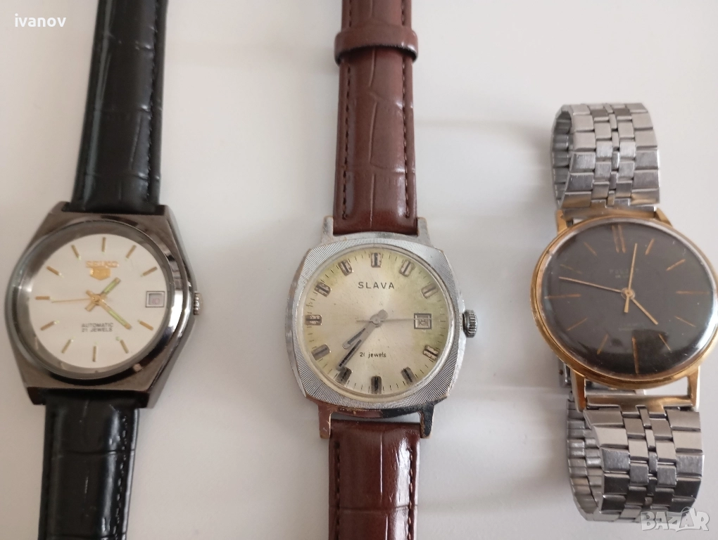 Часовниците са минали профилактика, смазване,с нови каишки ,в перфектно техническо състояние цени Seiko 140 лв,Poljot 200 лв ,Slava 140 лв