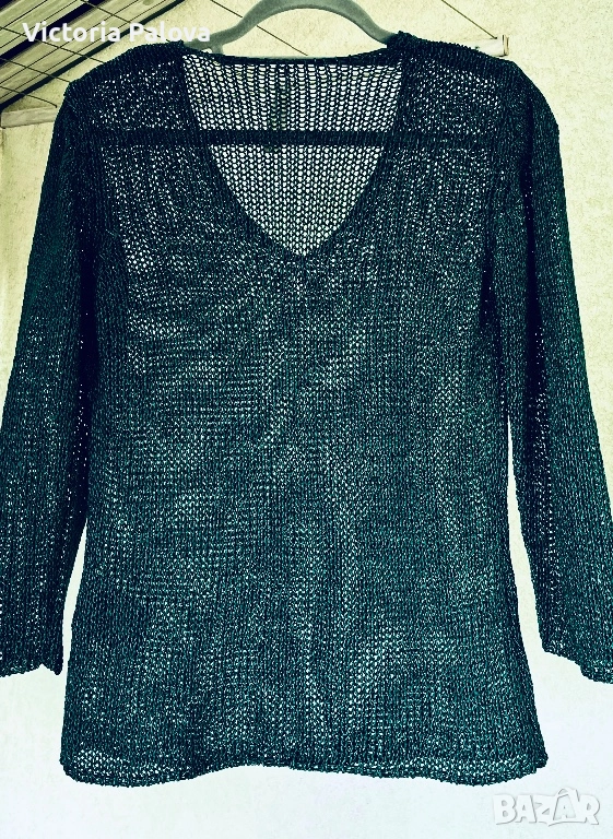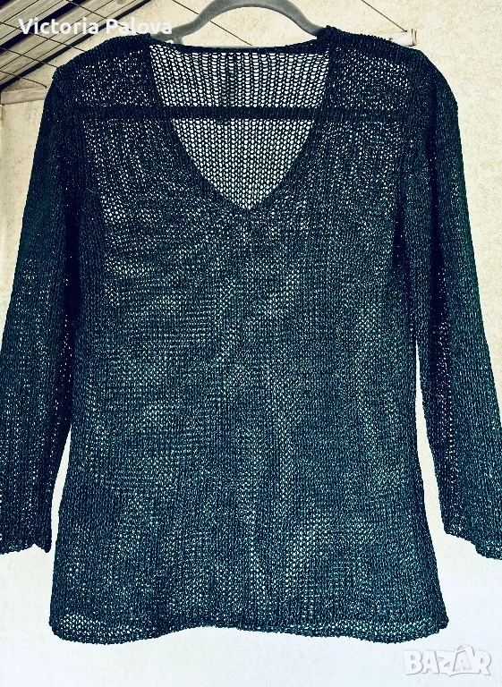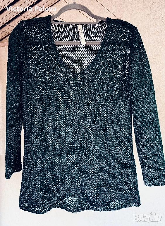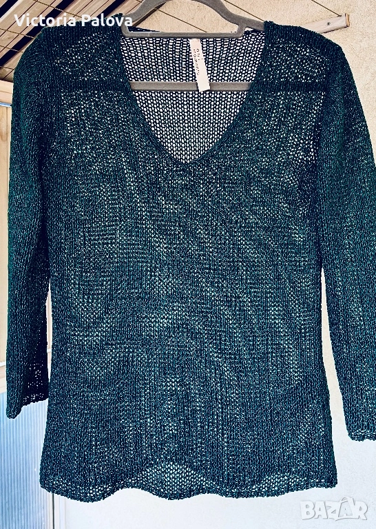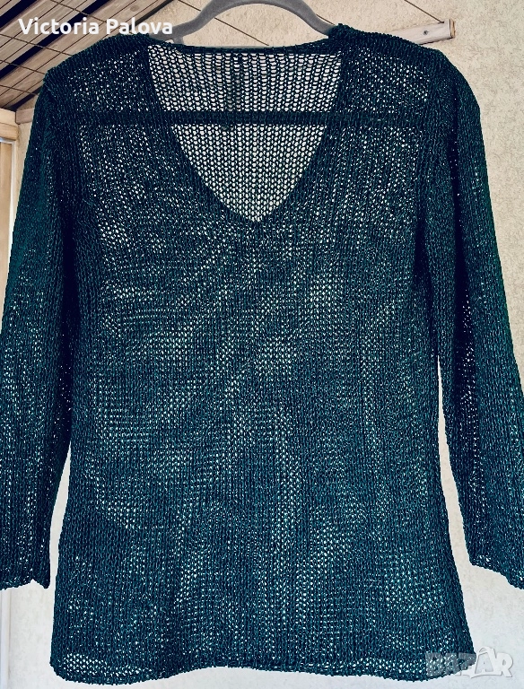 Марка с модерен цветен и иновативен дизайн. Тя е екстравагантна и никога не се подчинява на фиксираните норми. Девизът KNIT. PASSION. LOVE. означава трикотаж във всички аспекти на изработката, уникални принтове и небрежни стилове, реализирани игриво и ексклузивно. Мрежеста блуза ( sheer) в красив зелен цвят предлага прозрачен ефект и отличителна структура, която я прави по- различна от стандартните модели. Рамо - 42см, ГО - 50см, дължина - 64см, ръкав - 54см ( 3/4).