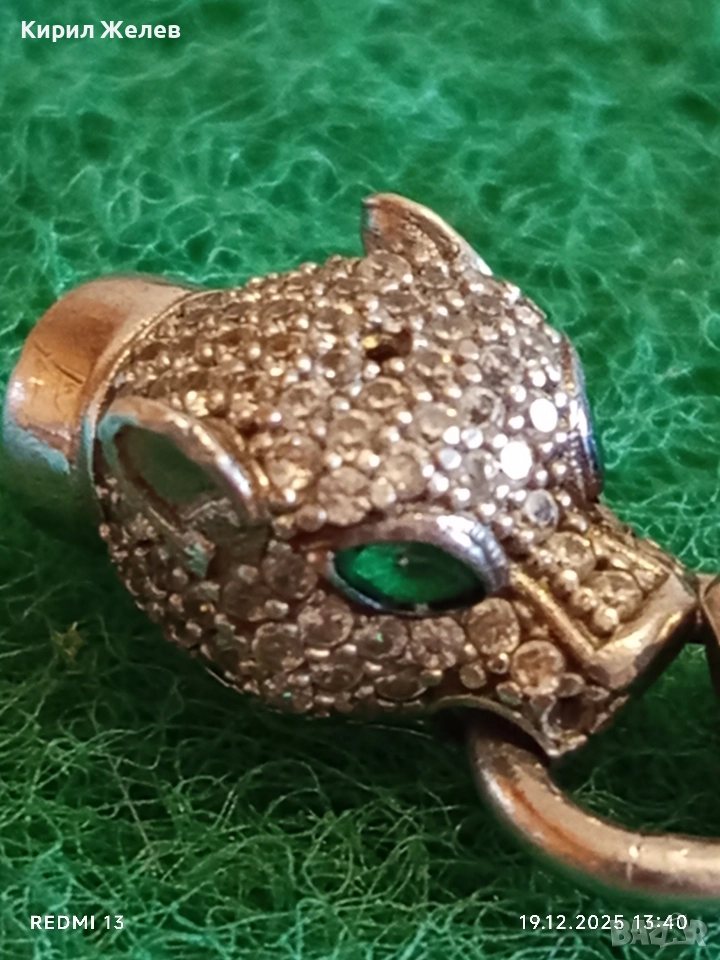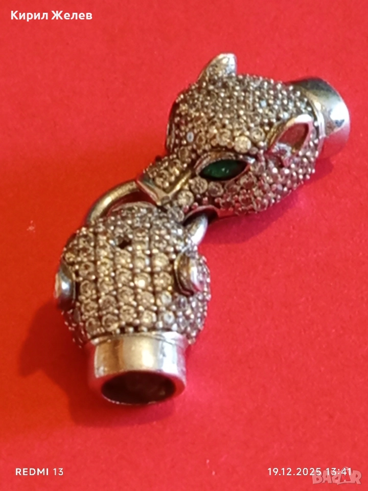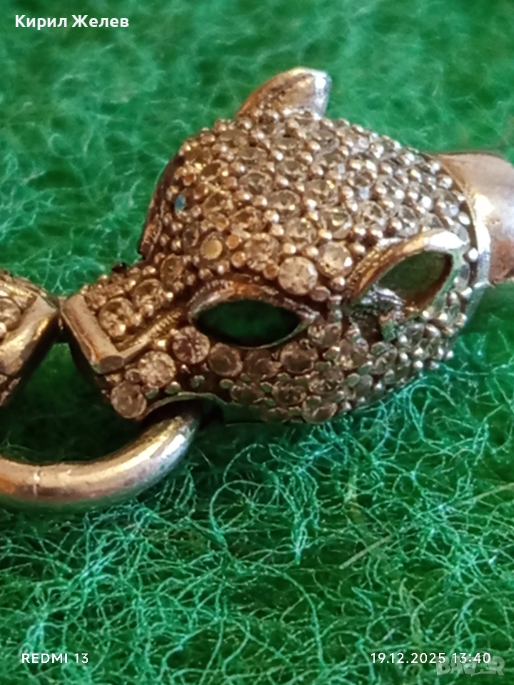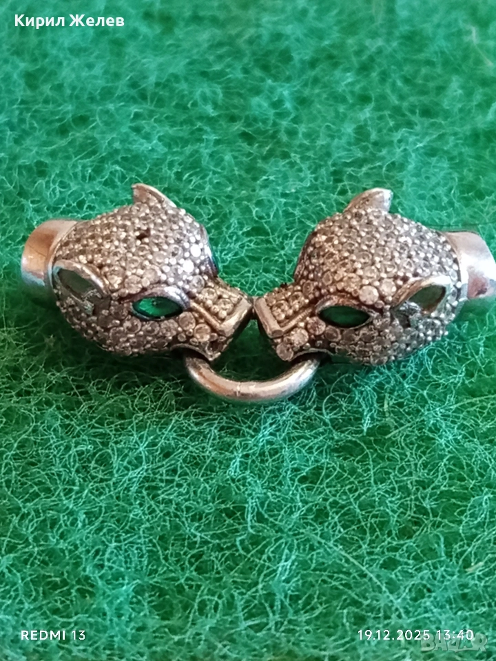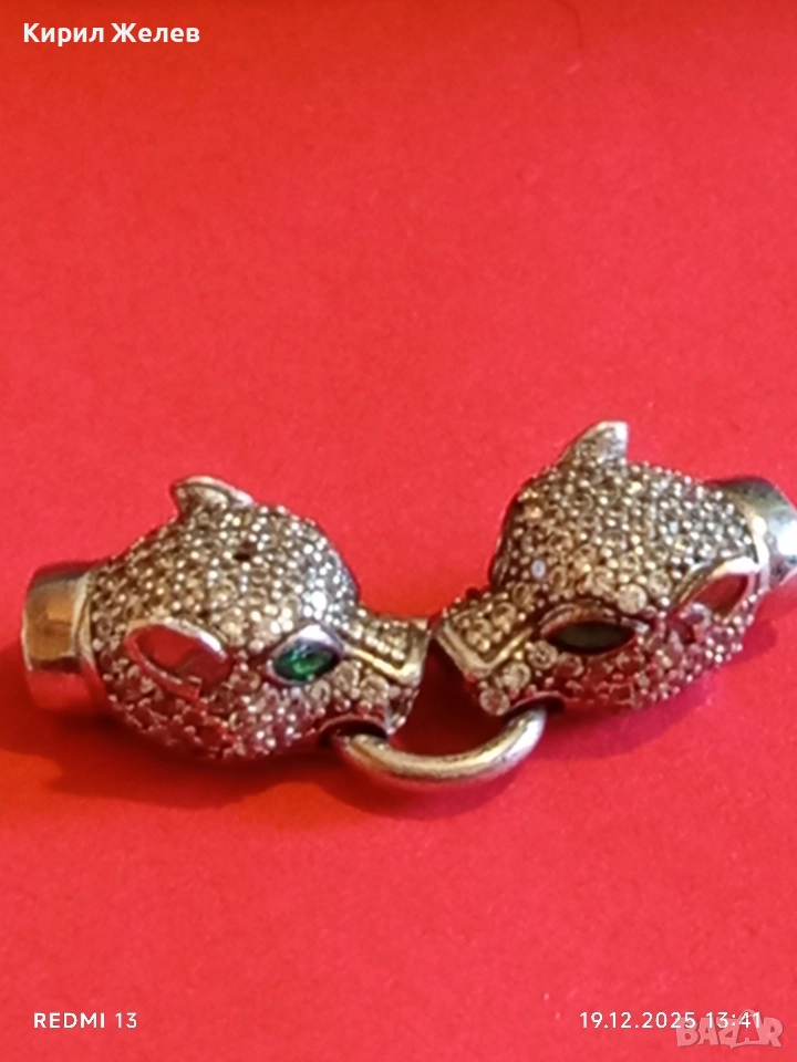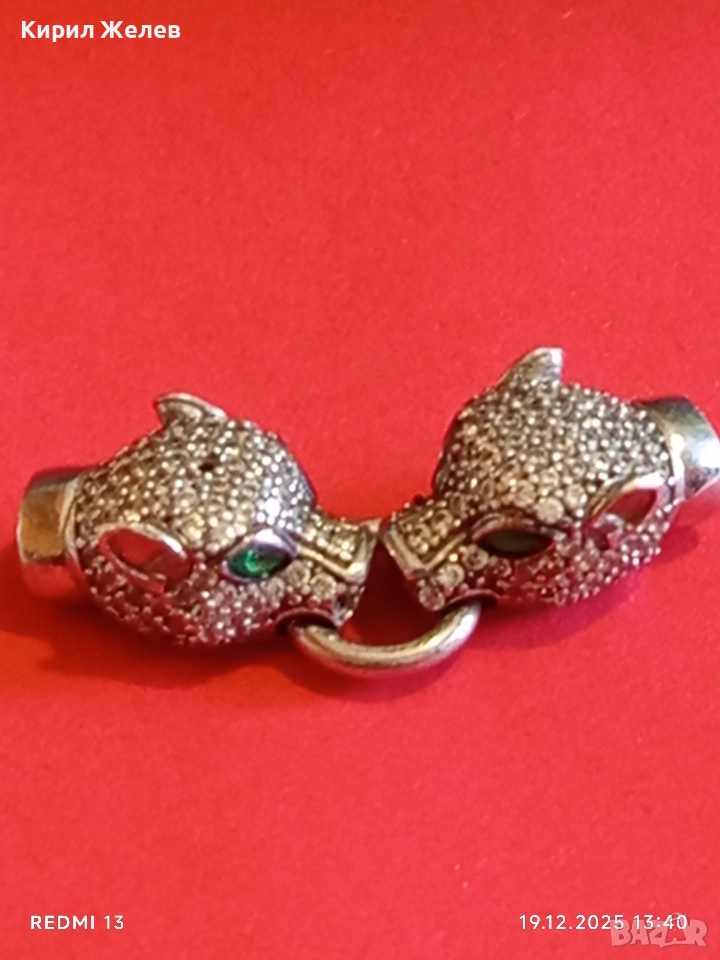 Луксозно сребърно бижу PANTHER с фасетирани кристали майстоска изработка 52409