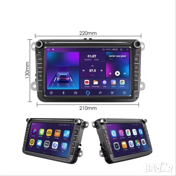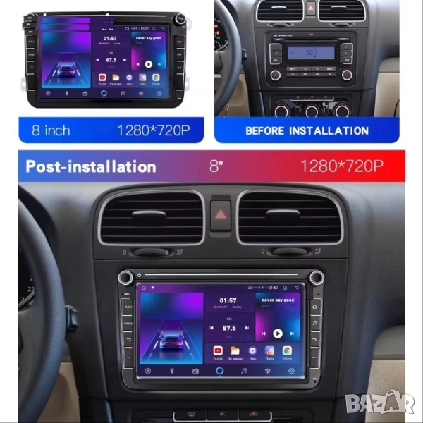 Модерната 8-инчова мултимедия е съвместима с широка гама модели на VW, Seat и Skoda, като предлага изключително бърза работа, стабилност и богати функции. Оборудвана е с 4GB RAM, 64GB ROM, 4-ядрен процесор и вграден вентилатор за охлаждане. Поддържа Apple CarPlay, Android Auto, Bluetooth, WiFi, USB и множество приложения за навигация, музика, видео и управление на телефона.