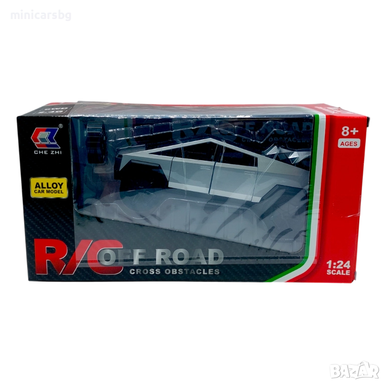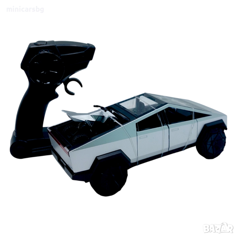 Метална кола Tesla Cybertruck в мащаб 1:24 – модерна радиоуправляема количка за фенове на електромобилите и готините модели. Реалистичен дизайн, масивен корпус и агресивна визия, която веднага се откроява.