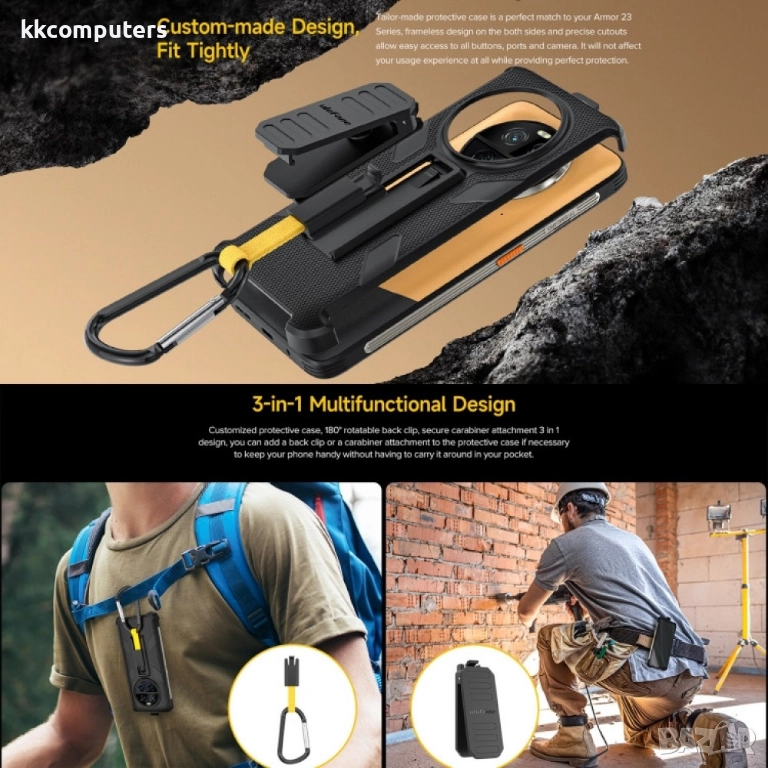 Калъфът за телефон ULEFONE предлага надеждна защита и практична функционалност, като прави това аксесоар идеален за модела Ulefone Armor 23 Ultra Материал: Метал, Пластмаса, TPU